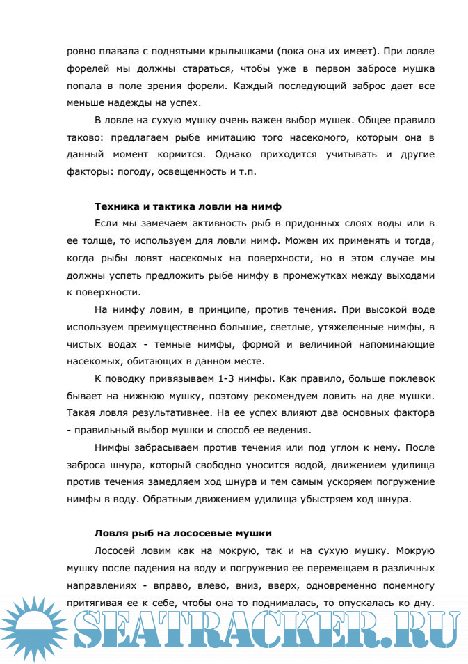 А также главы "Закономерности природы и успешность ловли", "Выбор искусственных мушек" и "Характеристика отдельных мушек".