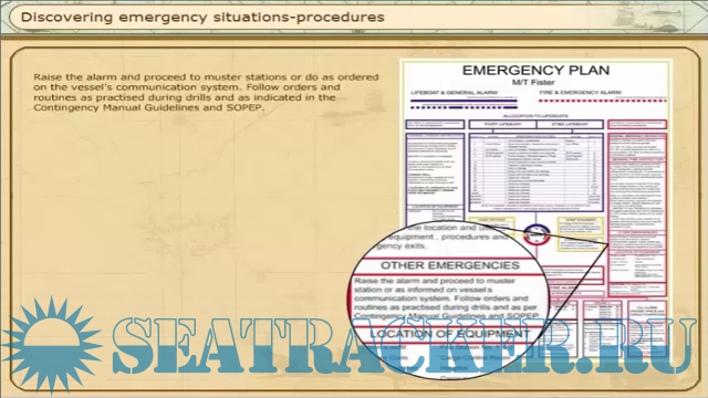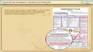 Emergency signals and specific duties allocated to crew members in the muster list, muster station and the correct use of personal safety equipment.