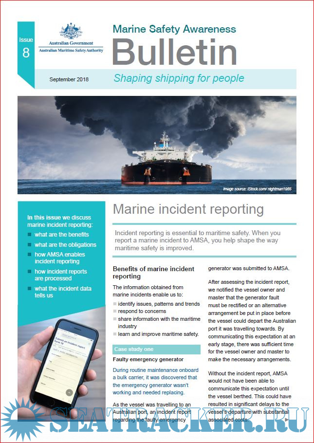 Description: The AMSA Marine Safety Awareness Bulletins (published twice a year) aims to raise safety awareness in the maritime industry by looking at trends and recent developments in incidents.