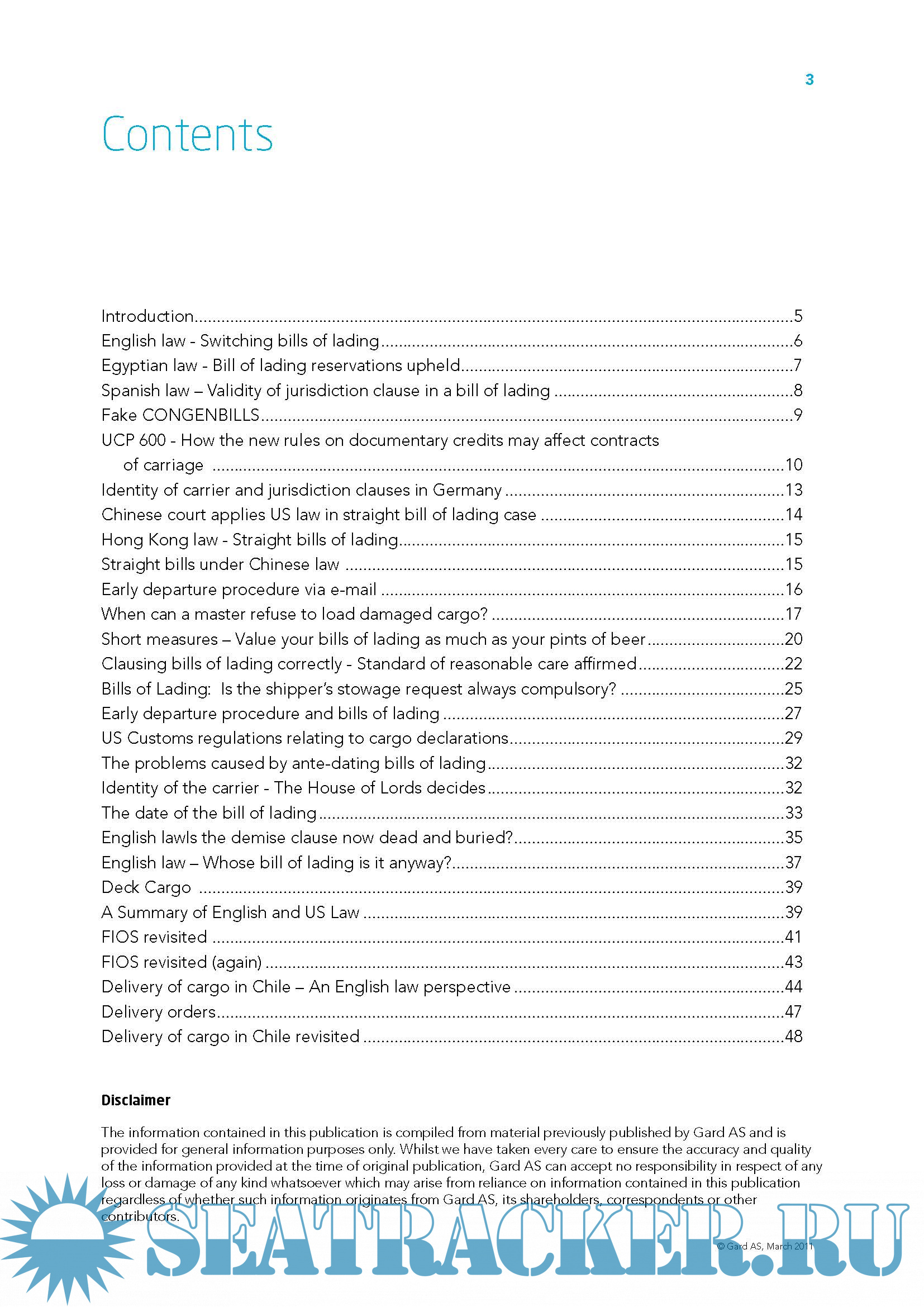 Bills of Lading, A selection of articles previously published by Gard AS
