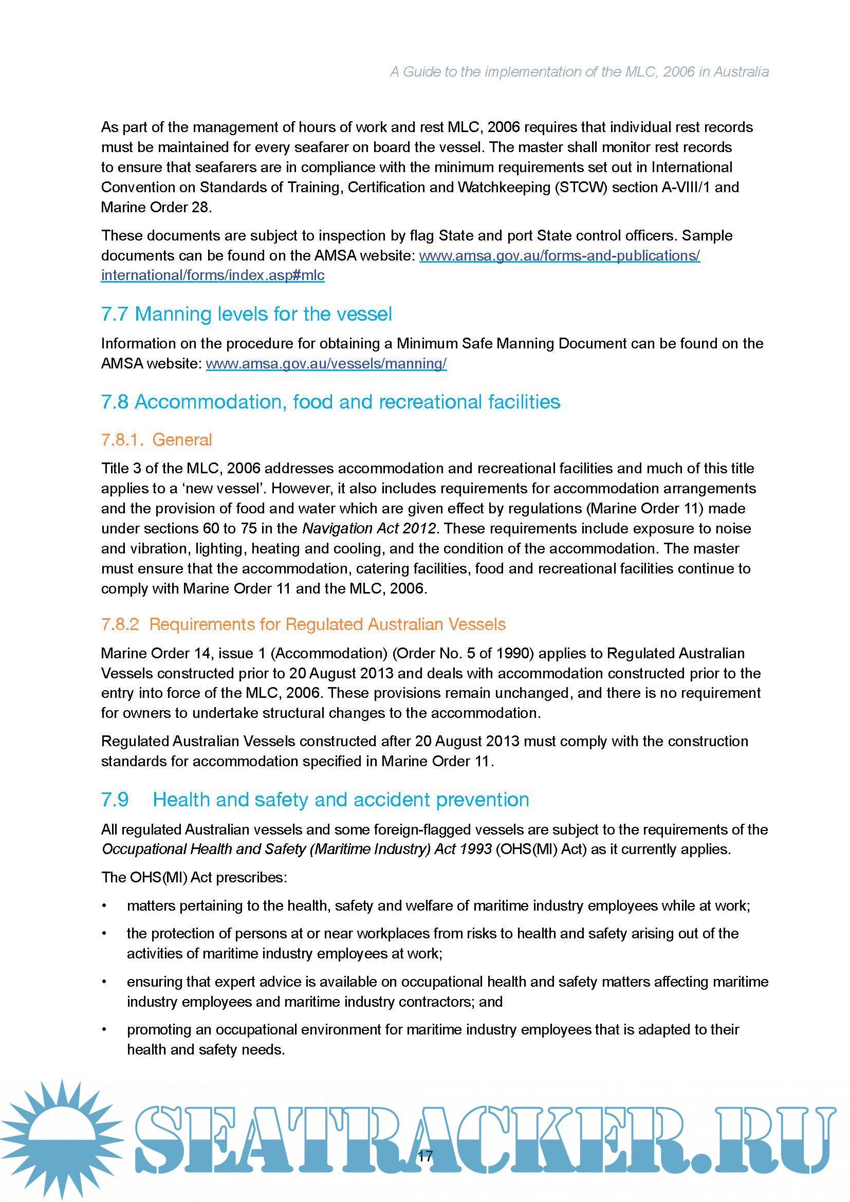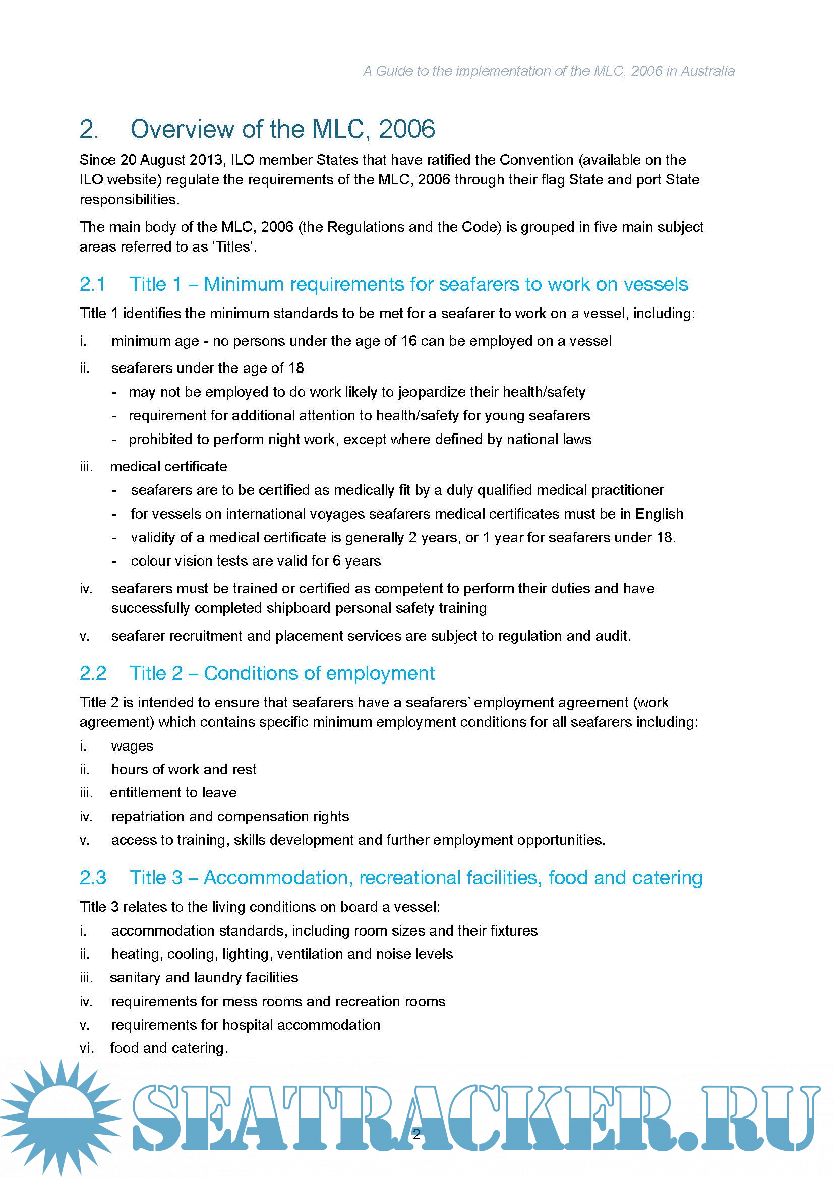 Maritime Labour Convention 2006 , A Guide to the implementation of the MLC in Australia, version 3