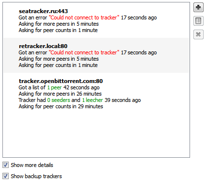 zxc, использую в основном Deluge, но ошибки по трекерам сняты через Transmission.