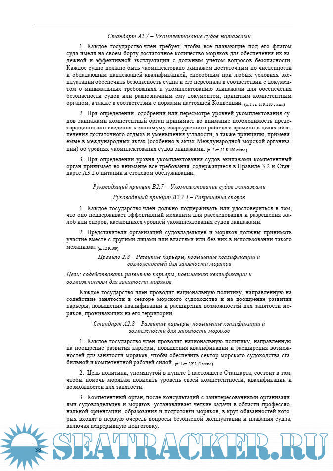 Год выпуска: 2006 Язык: русский Автор: Международное бюро труда Жанр: Конвенция (правила) Издательство: Международное бюро труда ISBN: 92-2-417917-7 Формат: PDF Качество: Изначально компьютерное (eBook) Количество страниц: 112 Описание: Желая создать единый согласованный акт, охватывающий, по мере возможности, все современные нормы существующих конвенций и рекомендаций о труде в морском судоходстве, а также основополагающие принципы, содержащиеся в других международных конвенциях о труде, в таких, например, как: –Конвенция 1930 года о принудительном труде (28); –Конвенция 1948 года о свободе ассоциации и защите права на организацию (87); –Конвенция 1949 года о праве на организацию и на ведение коллективных переговоров (98); –Конвенция 1951 года о равном вознаграждении (100); –Конвенция 1957 года об упразднении принудительного труда (105); –Конвенция 1958 года о дискриминации в области труда и занятий (111); –Конвенция 1973 года о минимальном возрасте (138); –Конвенция 1999 года о наихудших формах детского труда (182); принимая во внимание основной мандат Организации, который заключается в оказании содействия обеспечению достойных условий труда; принимая также во внимание международные нормы в отношении безопасности судов, их экипажей и пассажиров и качественного управления движением судов, содержащиеся в Международной конвенции 1974 года по охране человеческой жизни на море, с поправками, Конвенции 1972 года о международных правилах предупреждения столкновения судов в море с поправками, а также требования в отношении профессиональной подготовки и компетентности моряков, содержащиеся в Международной конвенции 1978 года о подготовке и дипломировании моряков и несении вахты с поправками; постановив принять ряд предложений для реализации такого акта, что является пунктом повестки дня сессии, решив придать этим предложениям форму международной конвенции; принимает следующую конвенцию, которая может именоваться Конвенцией 2006 года о труде в морском судоходстве.