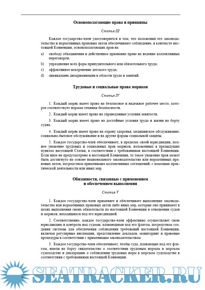 Описание: Желая создать единый согласованный акт, охватывающий, по мере возможности, все современные нормы существующих конвенций и рекомендаций о труде в морском судоходстве, а также основополагающие принципы, содержащиеся в других международных конвенциях о труде, в таких, например, как: