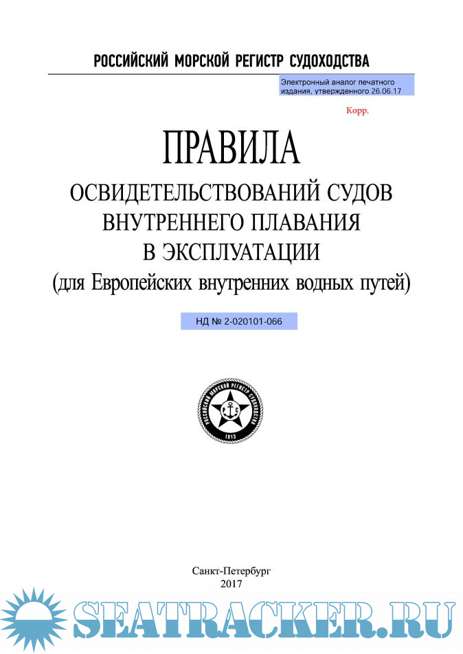 Доп. информация: Официальный (РМРС) электронный аналог печатного издания, утвержденного 26.06.17. Откорректирован на момент 26.10.2018. Корректура отмечена на полях красным шрифтом (см. образец на скриншотах).