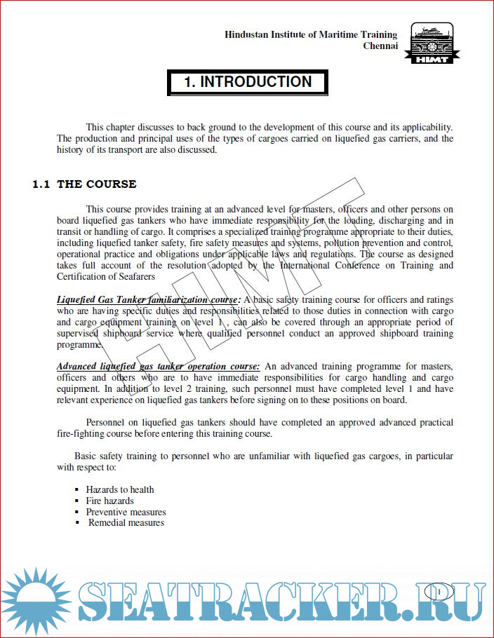 Description: This course provides training at an advanced level for masters, officers and other persons on board liquefied gas tankers who have immediate responsibility for the loading, discharging and in transit or handling of cargo. It comprises a specialized training programme appropriate to their duties, including liquefied tanker safety, fire safety measures and systems, pollution prevention and control, operational practice and obligations under applicable laws and regulations. The course as designed takes full account of the resolution adopted by the International Conference on Training and Certification of Seafarers.