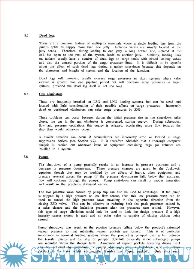 Year: 1987 Language: english Author: SIGTTO Genre: Guide Publisher: Witherby Publishing Group Ltd Edition: 1st Format: PDF Quality: Scanned pages Pages count: 37 Description: These guidelines will assist the operating management of terminals and liquefied gas carriers in reviewing the design, engineering and operating procedures of cargo transfer systems. The information provided will enable users to: • Recognise the potential hazards of surge pressure • Understand the factors that affect or create surge pressures • Avoid the generation of excessive surge pressures and momentum change • Review the engineering and operating procedures of the cargo transfer system • Understand aspects of surge pressure control on the other side of the ship/shore interface to enable mutual understanding of safe transfer procedures • Understand the potential benefits of a linked ship/shore ESD system in mitigating surge pressures.