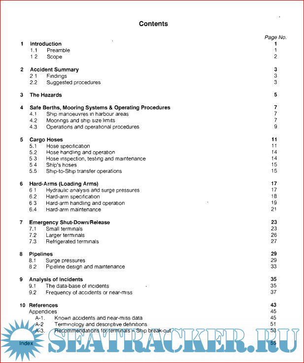 Year: 1996 Language: english Author: SIGTTO Genre: Research papers Publisher: SIGTTO Edition: 2nd ISBN: 1856091147 Format: PDF Quality: Scanned pages Pages count: 51 Description: The report covers accidents and near misses at the ship/shore interface involving either hoses or hard arms. The study also includes ship/shore mooring security and spill limitation devices, both these subjects having direct relevance to the security of the cargo connection. Additional info: The report is directly addressed mainly to terminal operators but some aspects could be of direct relevance to ship operators.