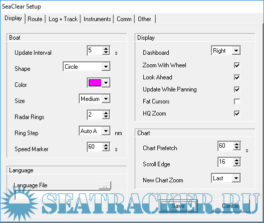 Description: SeaClear is a PC based chart plotter for Windows 10/8/7/2000/XP/NT/95/98/ME. With a GPS connected it displays the current position, speed, heading and other data on the screen. No Linux version is available but SeaClear is reported to work well with Wine, see WineHQ for more details. SeaClear II uses raster charts and can use most BSB/KAP version 1 - 3 and GEO/NOS commercial charts. Encrypted charts, like BSB/CAP can not be used. Most common projections are supported. Chart datum's are supported. You can add your own charts, scan or capture them, save as PNG, BMP or other common format. Skewed and rotated charts can be calibrated. Chart border can be set to reduce the actual chart area.