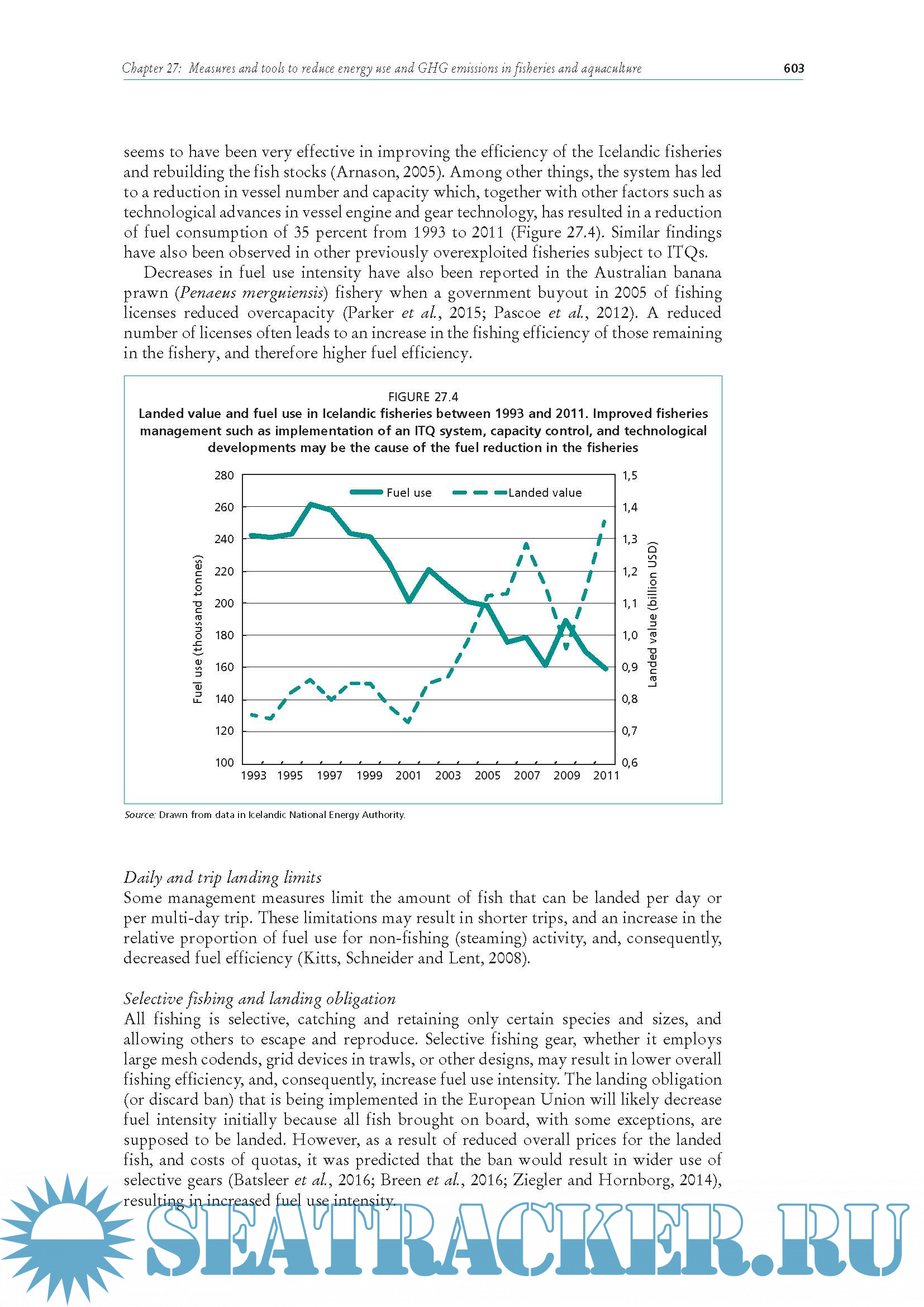 Year: 2018 Language: english Author: FOOD AND AGRICULTURE ORGANIZATION OF THE UNITED NATIONS Genre: Technical book Format: PDF Quality: eBook Pages count: 654 Description: The 2015 Paris Climate Agreement recognizes the need for effective and progressive responses to the urgent threat of climate change, through mitigation and adaptation measures, while taking into account the particular vulnerabilities of food production systems. The inclusion of adaptation measures in the fisheries and aquaculture sector is currently hampered by a widespread lack of targeted analyses of the sector’s vulnerabilities to climate change and associated risks, as well as the opportunities and responses available. This report provides the most up-to-date information on the disaggregated impacts of climate change for marine and inland fisheries, and aquaculture, in the context of poverty alleviation and the differential dependency of countries on fish and fishery resources. The work is based on model projections, data analyses, as well as national, regional and basin-scale expert assessments. The results indicate that climate change will lead to significant changes in the availability and trade of fish products, with potentially important geopolitical and economic consequences, especially for those countries most dependent on the sector.
