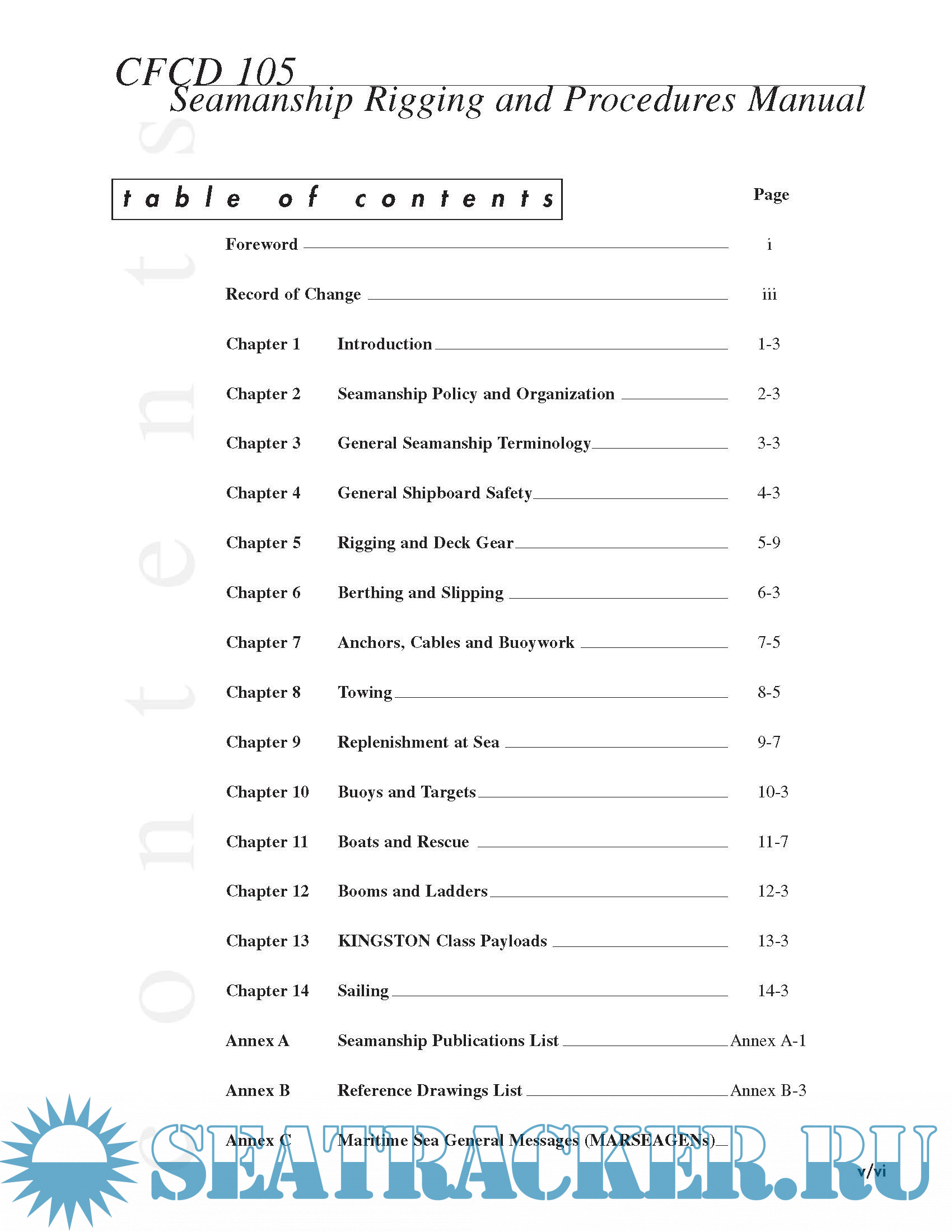 Description: The aim of CFCD 105 - Seamanship Rigging and Procedures Manual is to