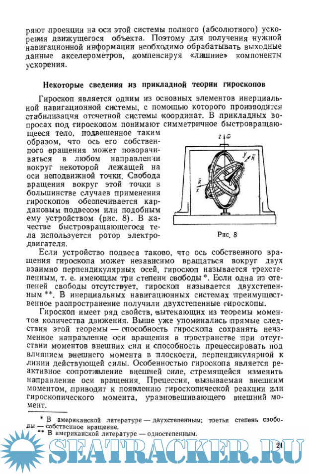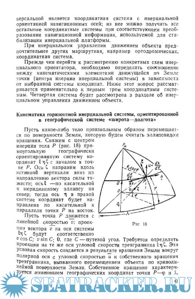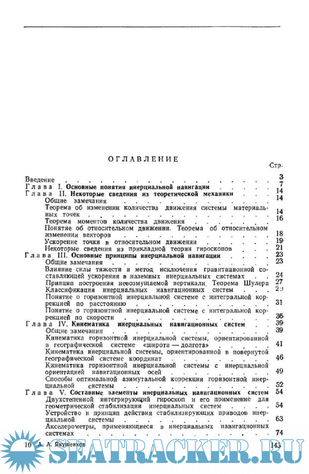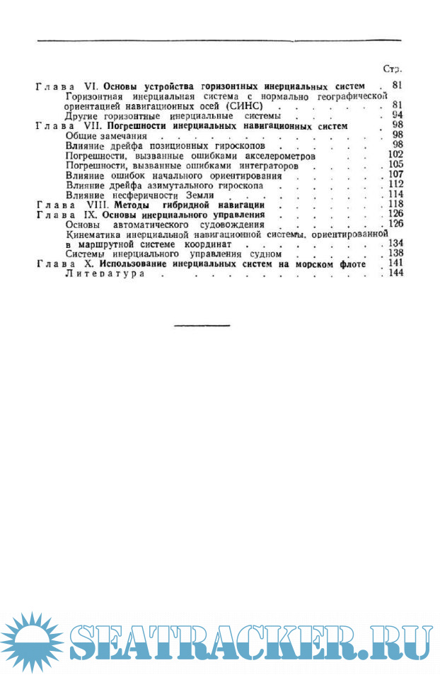 В основу книги положены несколько расширенные и дополненные материалы лекций, прочитанных автором в 1960 г. в ЛВИМУ им. адм. С. О. Макарова. В ней впервые рассмотрена кинематика систем инерциальной навигации, ориентированных в некоторых координатных системах, представляющих интерес для морского флота, составлены структурные схемы инерциальных ориентиров в этих координатных системах, рассмотрены некоторые специфические ошибки морских инерциальных систем, изложены принципы автоматического судовождения с применением инерциальных систем