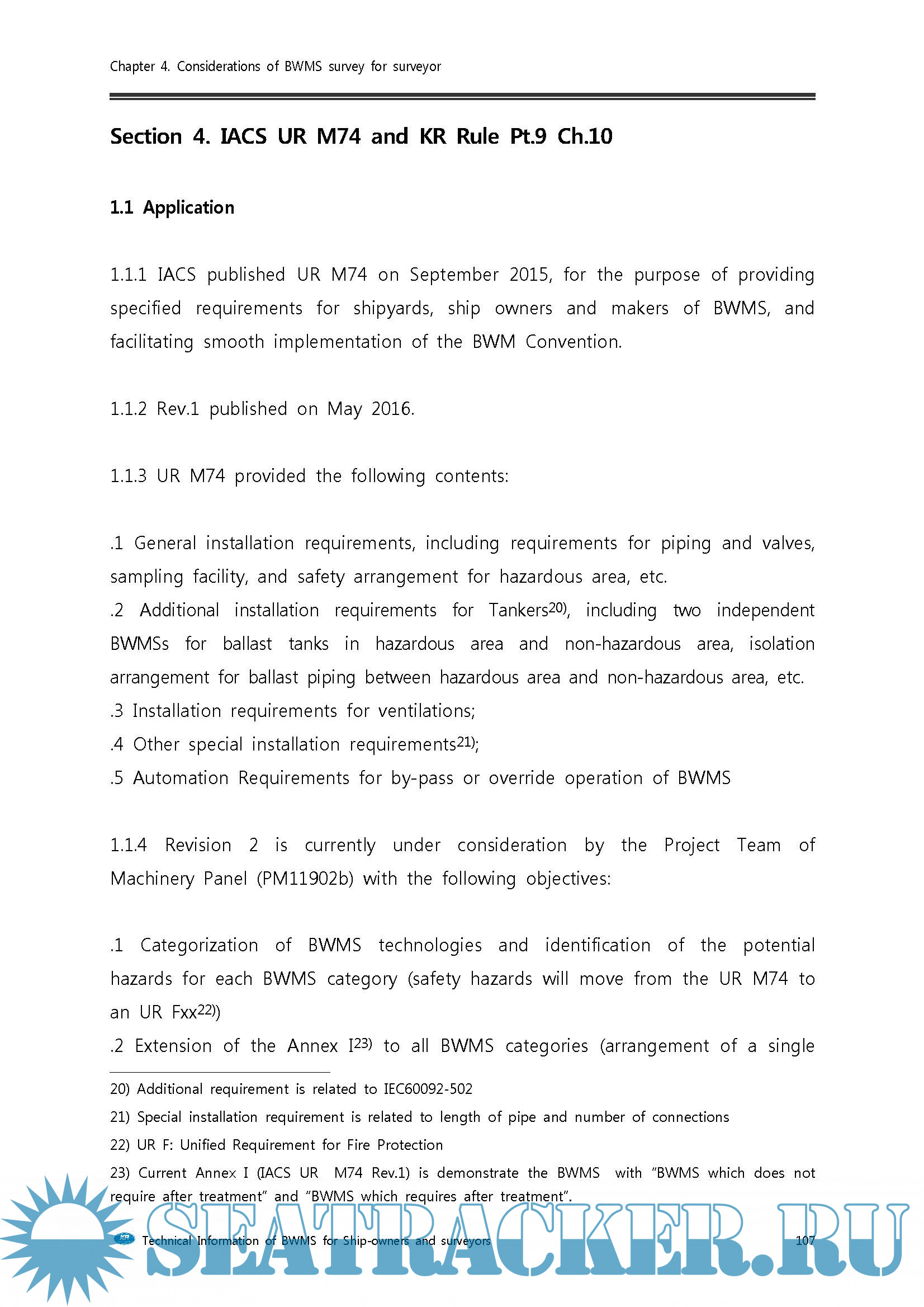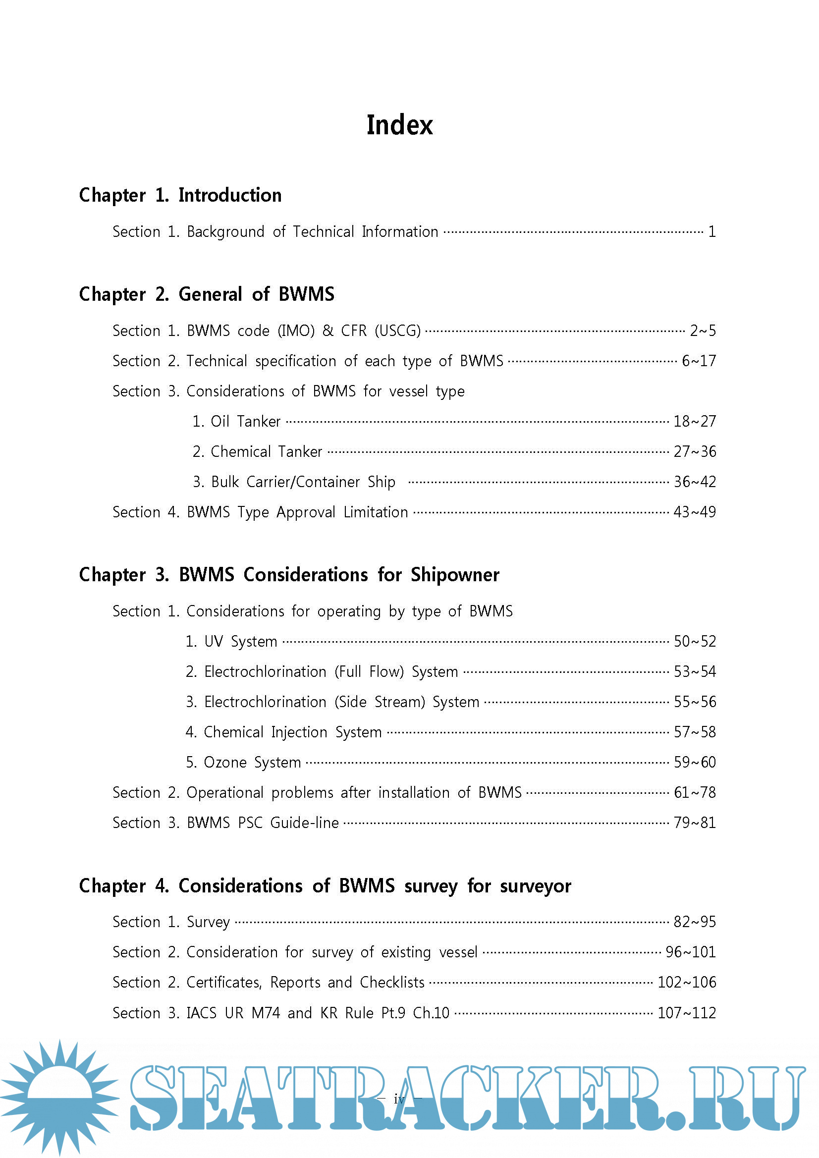 Year: 2018 Language: english Author: KR Genre: Technical book Format: PDF Quality: eBook Pages count: 122 Description: Korean Register (KR), as one of the leading technical advisors to the maritime industry, has been endeavoring to develop technological solutions that will assist our valued customers in overcoming challenges that they face in their everyday business. As a part of this effort, KR has pooled its resources to develop “BWMS Technical Information for Shipowners and Surveyors”. In this publication, you will find helpful tips on what the crew members on board need to know about the Ballast Water Management System (BWMS) as well as useful information on the focus area of surveyors and the Port State Control on BWMS, all designed to help you make sound and effective decisions on the installation and operation of BWMS.