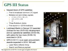 Year: 2017 Language: english Author: NASA Genre: Presentation Format: PDF Quality: eBook Pages count: 90 Description: Applications of Satellite Navigation are Everywhere... Military Civilian Transportation Public services Precise machine control Timing and frequency Surveying Surveillance Recreational Space Scientific applications US spends annually about $1.0B-1.5B on GPS Annual direct economic benefit has been estimated at about $70B, 0.4% GDP