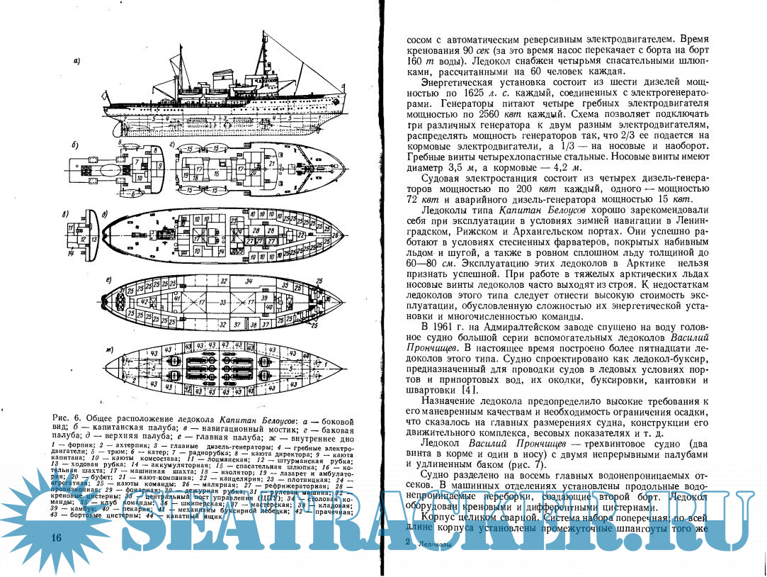 Год выпуска: 1972 Язык: русский Автор: В.Каштелян Жанр: Справочное издание Издательство: Судостроение Формат: PDF Качество: Отсканированные страницы Количество страниц: 288 Описание: В книге «Ледоколы» обобщен опыт, накопленный при создании и проектировании ледоколов, освещены способы расчета их ледовых качеств, особенности конструкции и устройства и определены пути дальнейшего совершенствования. Дано описание всех построенных отечественных и современных зарубежных ледоколов, проанализированы условия их работы, рассмотрены основные ледовые качества ледокола (ледовая ходкость, ледовая прочность, маневренность, условия заклинивания), методы оценки этих качеств, разработанные советскими специалистами; отмечены особенности конструкции основных механизмов и систем ледоколов; приведены рекомендации по их проектированию.