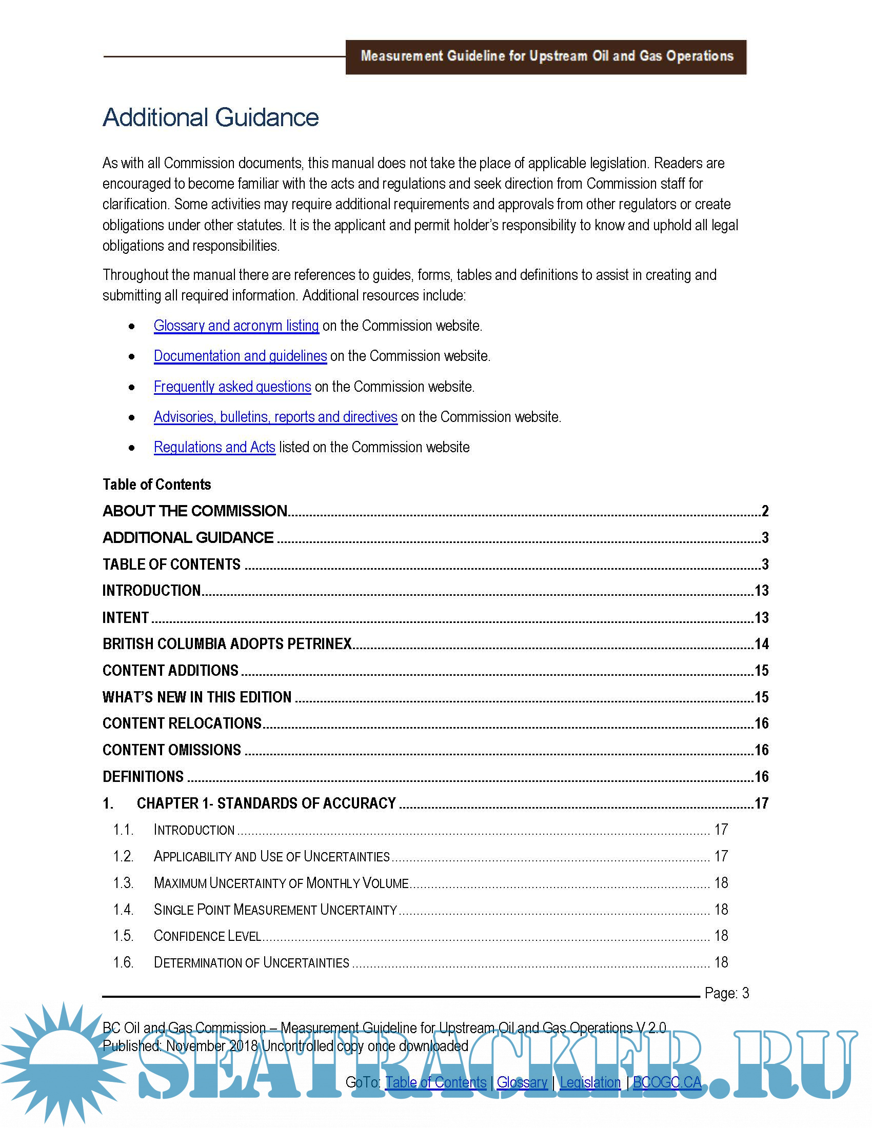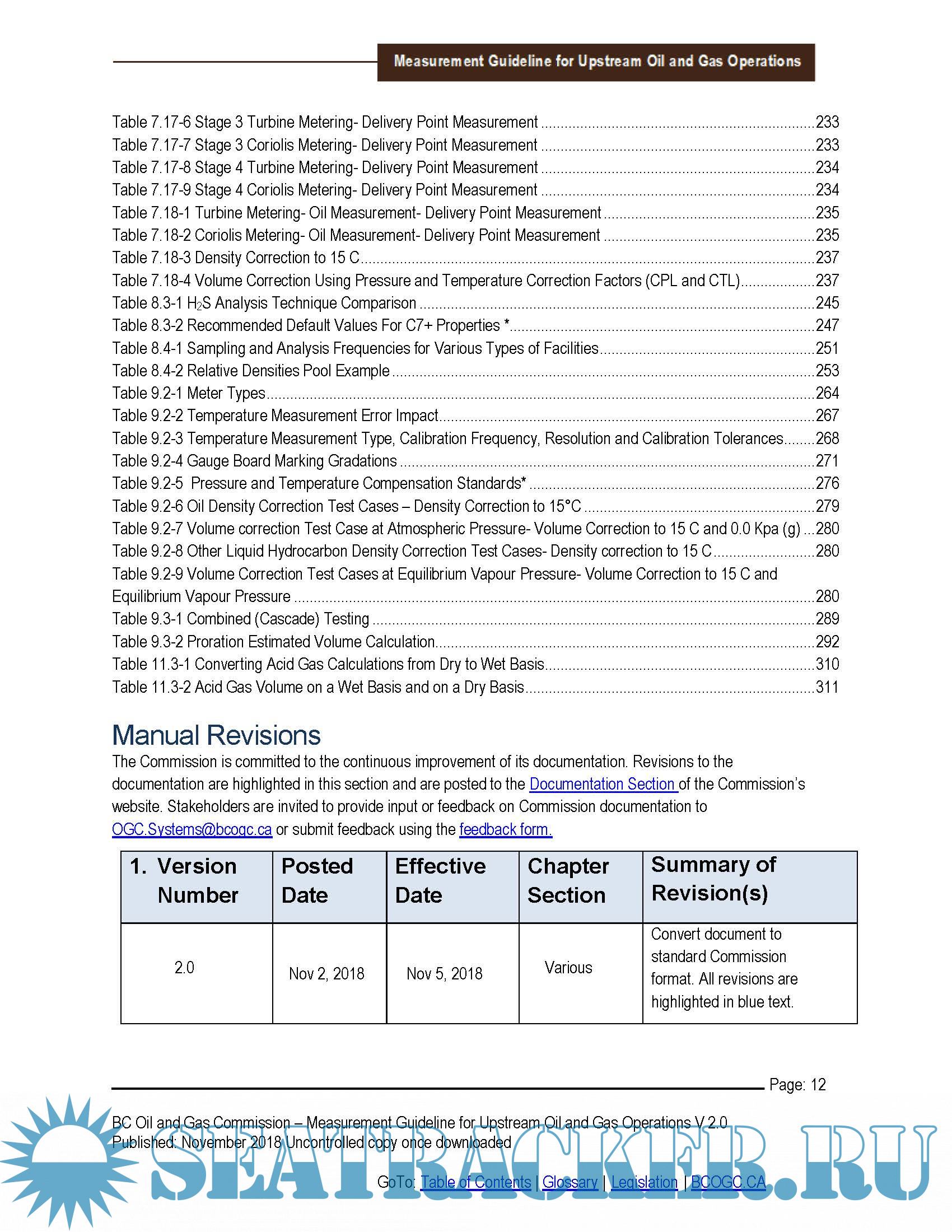 Year: 2018 Language: english Author: BC Oil and Gas Commission Genre: Manual Format: PDF Quality: eBook Pages count: 411 Description: In this manual, the term “measurement” is used to include measurement, estimation, accounting, and reporting. While measurement allows the determination of a volume, accounting and reporting are integral components of measurement in that after a fluid volume is “measured”, mathematical procedures (accounting) and/or estimation may have to be employed to arrive at the desired volume to be “reported”. This Guideline is not intended to take the place of the applicable legislation. Adherence to the standards and practices in this Guideline are considered an effective way for permit holders to achieve compliance with the applicable regulatory requirements relating to measurement. Deviation from these standards and practices will be evaluated on their demonstrated effectiveness, in accordance with the objectives for measurement set out in this Guideline. Permit holders may choose to include some or all of this Measurement Guideline into their own internal standards and practices. To facilitate such adoption, the guidance contained in this Guideline has been written in normative (or mandatory) language.