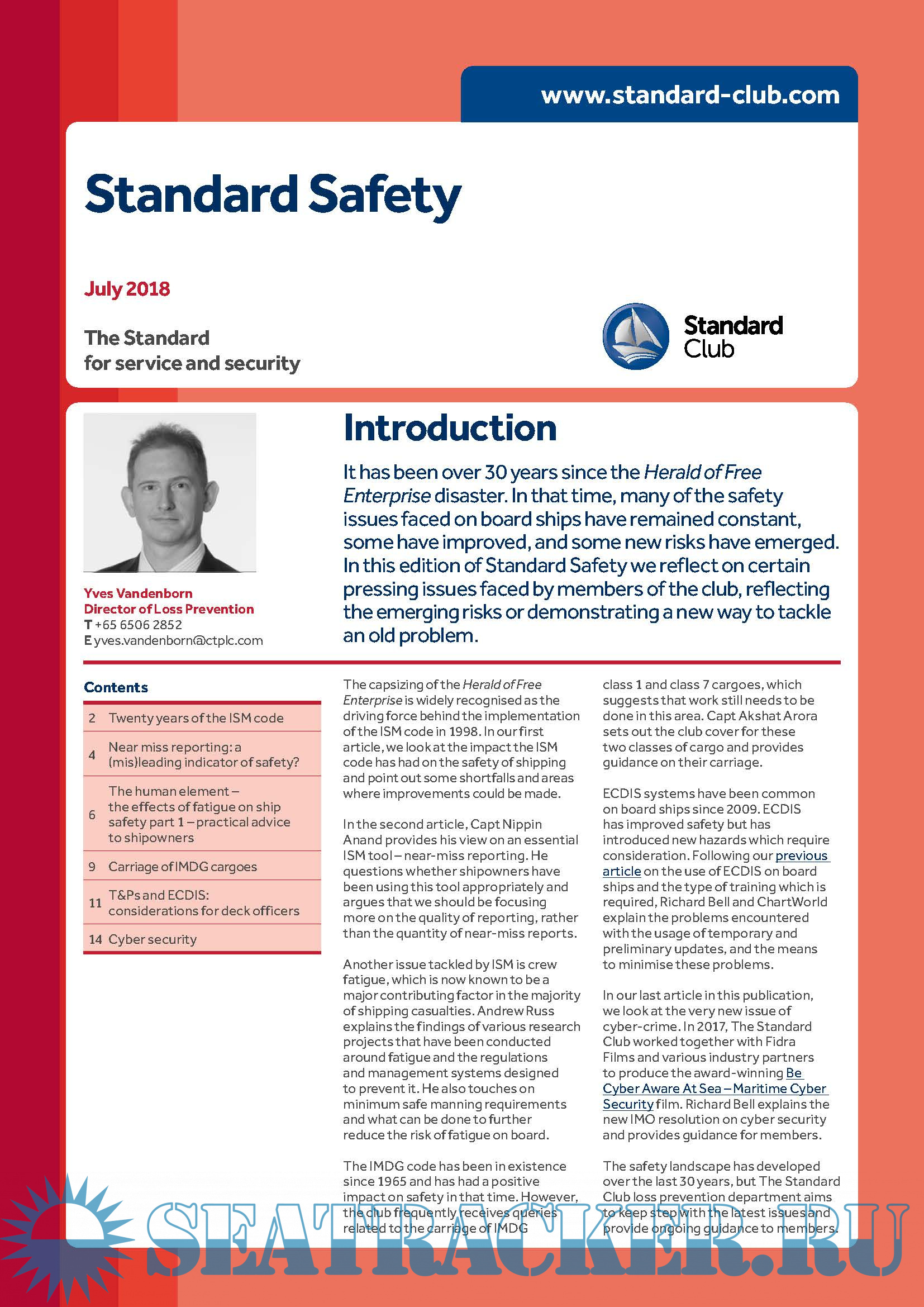 Year: 2018 Language: english Author: STANDARD P&I Genre: Guide Format: PDF Quality: eBook Pages count: 16 Description: It has been over 30 years since the Herald of Free Enterprise disaster. In that time, many of the safety issues faced on board ships have remained constant, some have improved, and some new risks have emerged. In this edition of Standard Safety we reflect on certain pressing issues faced by members of the club, reflecting the emerging risks or demonstrating a new way to tackle an old problem.