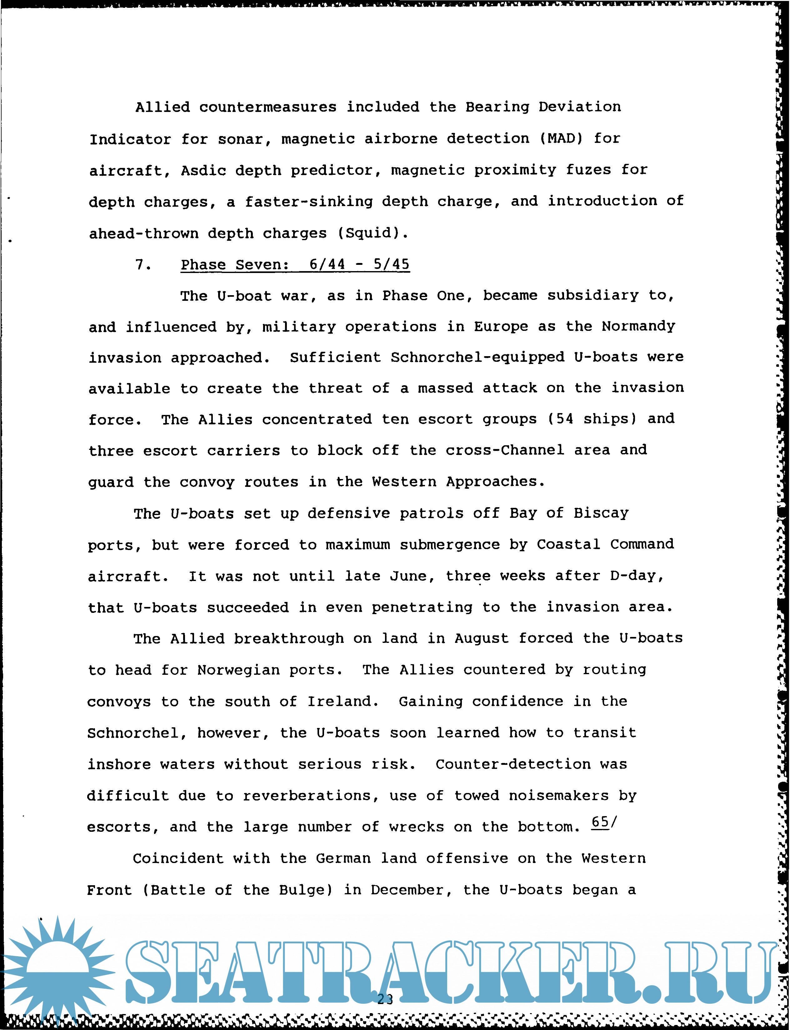 Year: 1986 Language: english Author: Information Spectrum Genre: History Format: PDF Quality: Unknown Pages count: 51 Description: War is dynamic, with each party to the conflict seeking an advantage to achieve his own ends, frustrate those of the enemy, decisively defeat or demoralize the enemy's battle forces, or prevent the enemy from gaining a decisive advantage. An anti- SLOC campaign is basically a war of attrition, except in a few cases of vital, timely, or irreplaceable military cargo. It presumes a strategy which makes provisions for a long, drawn-out struggle involving the classic move and countermove of tactics, technology, and forces.