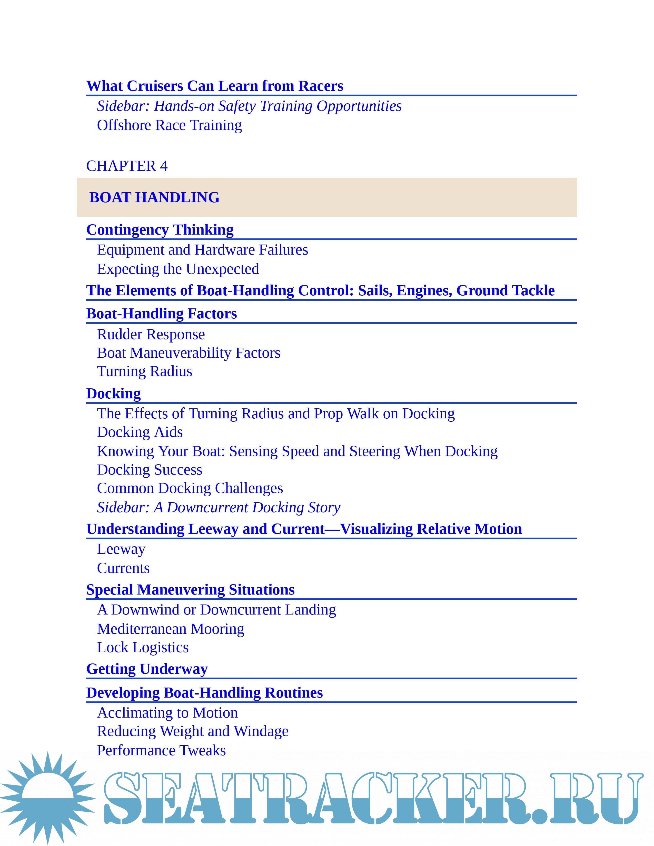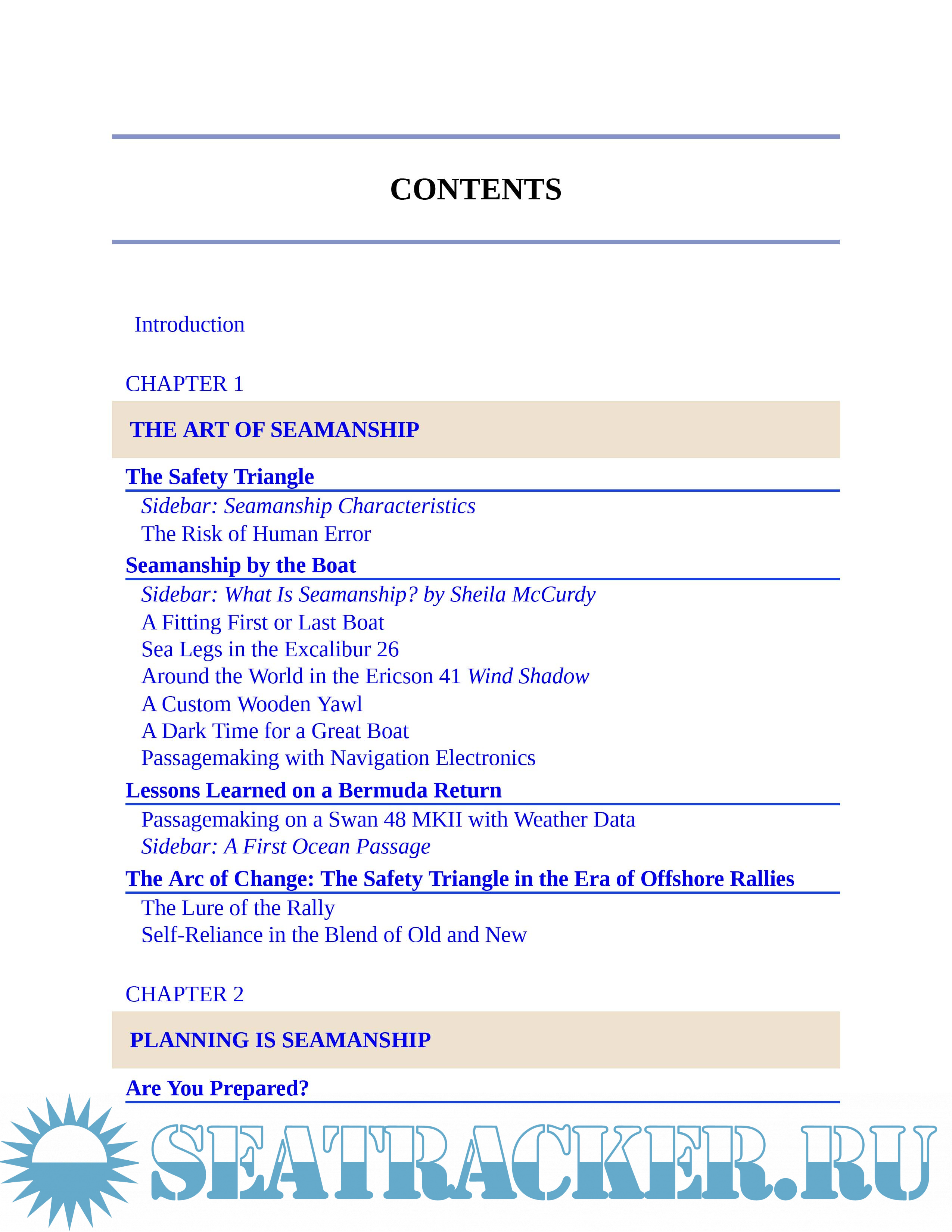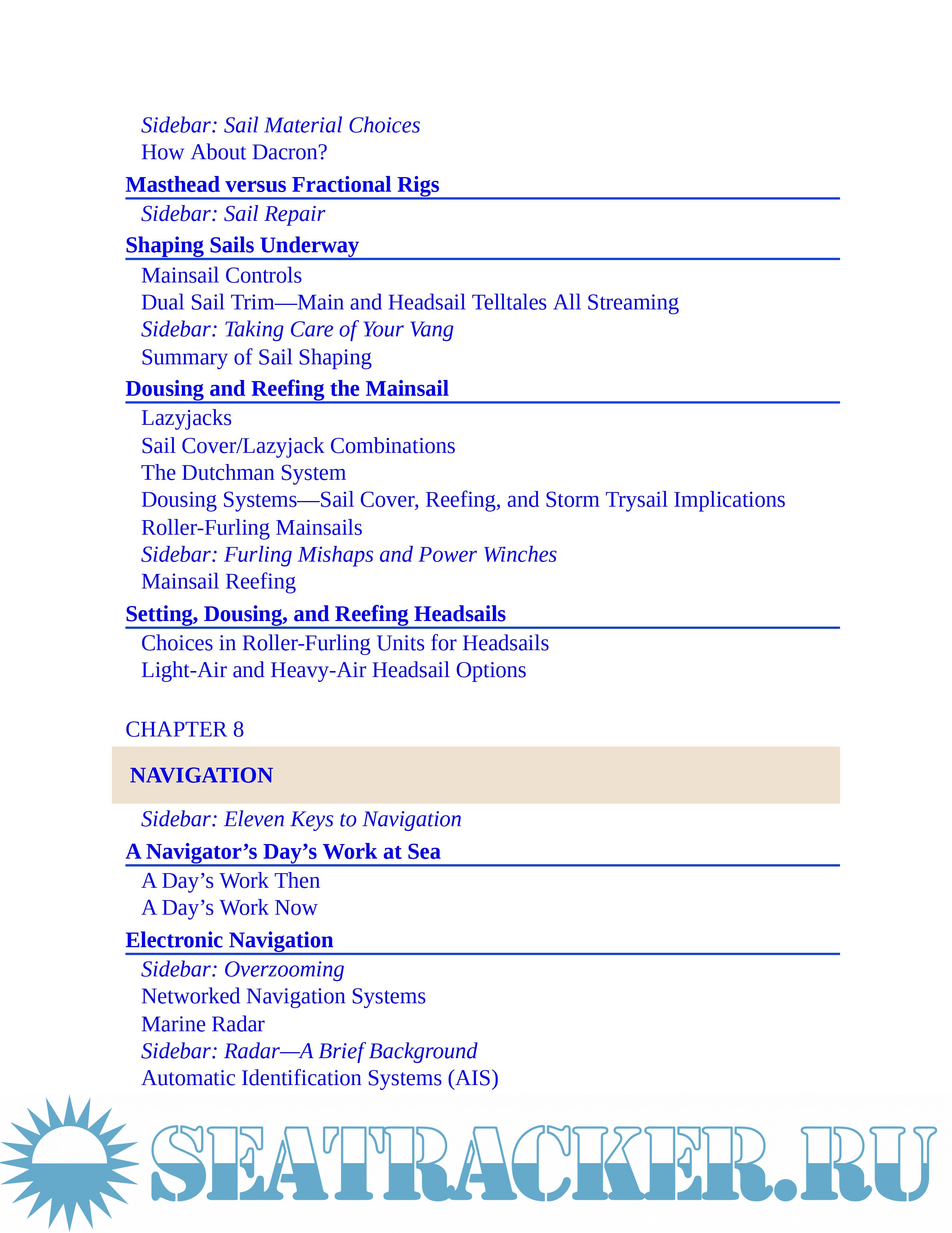 Year: 2015 Language: english Author: Ralph Naranjo Genre: Manual Publisher: McGraw-Hill Education ISBN: 978-0-07-179158-8 Format: EPUB/PDF Quality: eBook Pages count: a lot Description: Wind, waves, weather, and water demand the practiced art of seamanship... Each time a sailboat casts off its docklines the sailor enters a marine realm that demands knowledge, preparedness, vigilance, and coolheadedness--these qualities are the foundation of good seamanship. Both an art as well as a science, seamanship is also the mastery of numerous practical details, from the best choice of line for a jib sheet to an accurate assessment of the passage of a deep low-pressure system. Around-the-world sailor Ralph Naranjo--technical expert, ocean racer, former Vanderstar Chair at the U.S. Naval Academy--delivers a priceless reference for anything that comes up while on the water, sharing all the knowledge today's sailors need to "hand, reef, and steer"--an enduring reference to the collective skills of the bluewater sailor. Naranjo's vast knowledge is supported by real-life examples of sailing mishaps, sample itineraries, vibrant photos, as well as first-hand accounts and sidebars from top sailors and marine experts, including Shelia McCurdy, Chuck Hawley, Lee Chesneau, and Paul Miller, N.A. Seamanship is a dynamic art, demanding full attention from the sailor amidst a constant flow of information and knowledge. The Art of Seamanship will improve your problem-solving skills, whether daysailing around the harbor or voyaging around the world... Additional info: PDF file was converted from EPUB, so it's highly likely not match to print version )