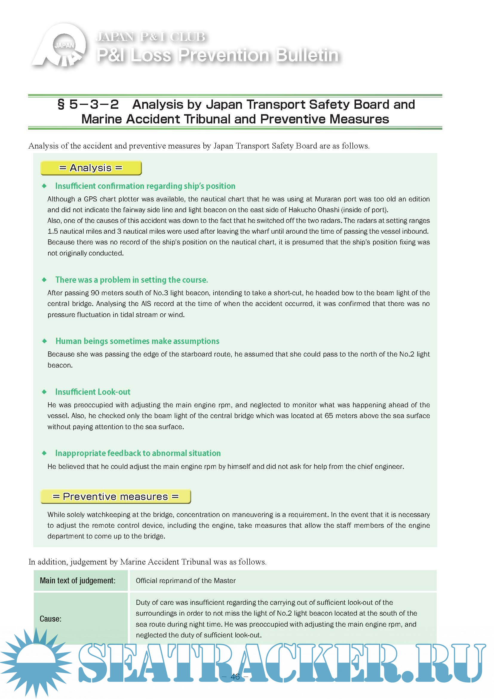 Loss Prevention Bulletin Volume 52 - Japan P&I Club [2021, PDF]