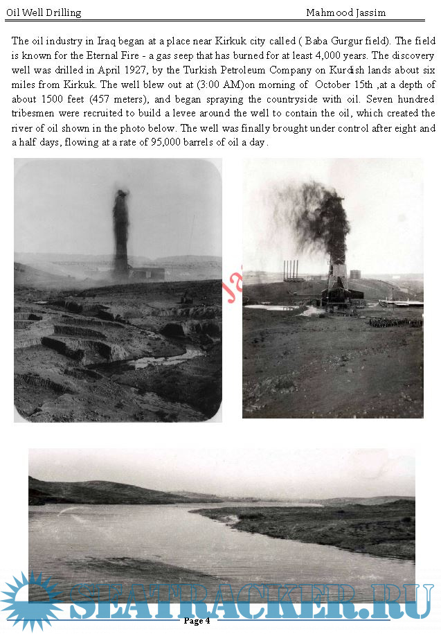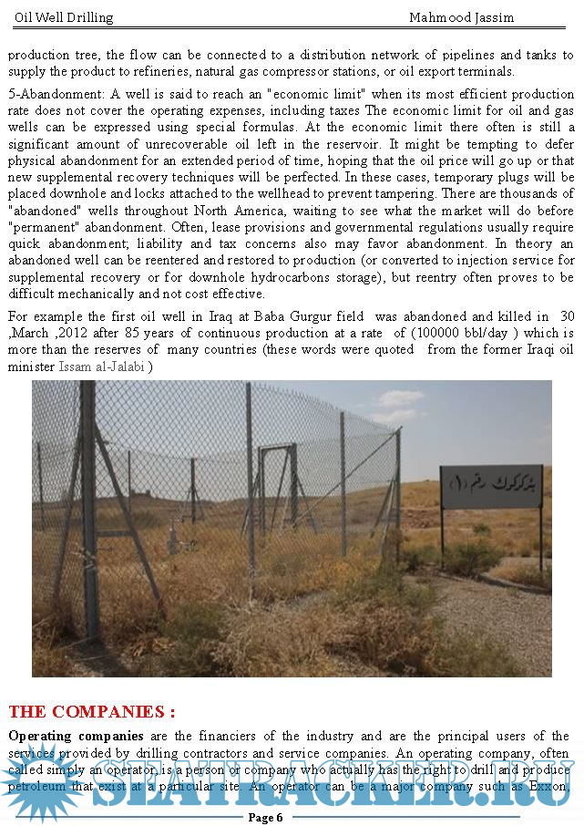 Year: 2014 Language: english Author: Mahmood Jassim AL-Khafaji Genre: Presentation Format: PDF Quality: eBook Pages count: 141 Description: The earliest known for mankind where oil wells in China in (347 A.D.). These wells had depths of up to about 243.84 meters (800 ft) and were drilled using bits attached to bamboo poles. The Chinese were burning oil to evaporate the brine in order to produce salt, and an extensive bamboo pipelines network was used to deliver oil to salt springs. In (1594 A.D.) were dug by men manually (hand dug) up to 35 meters deep and that was at Baku, Azerbaijan. In (1802 A.D.) a 58- ft (18 meters) well was drilled using a spring pole in the Kanawha Valley of West Virginia by the brothers David and Joseph Ruffner to produce brine. The well took 18 months to drill.