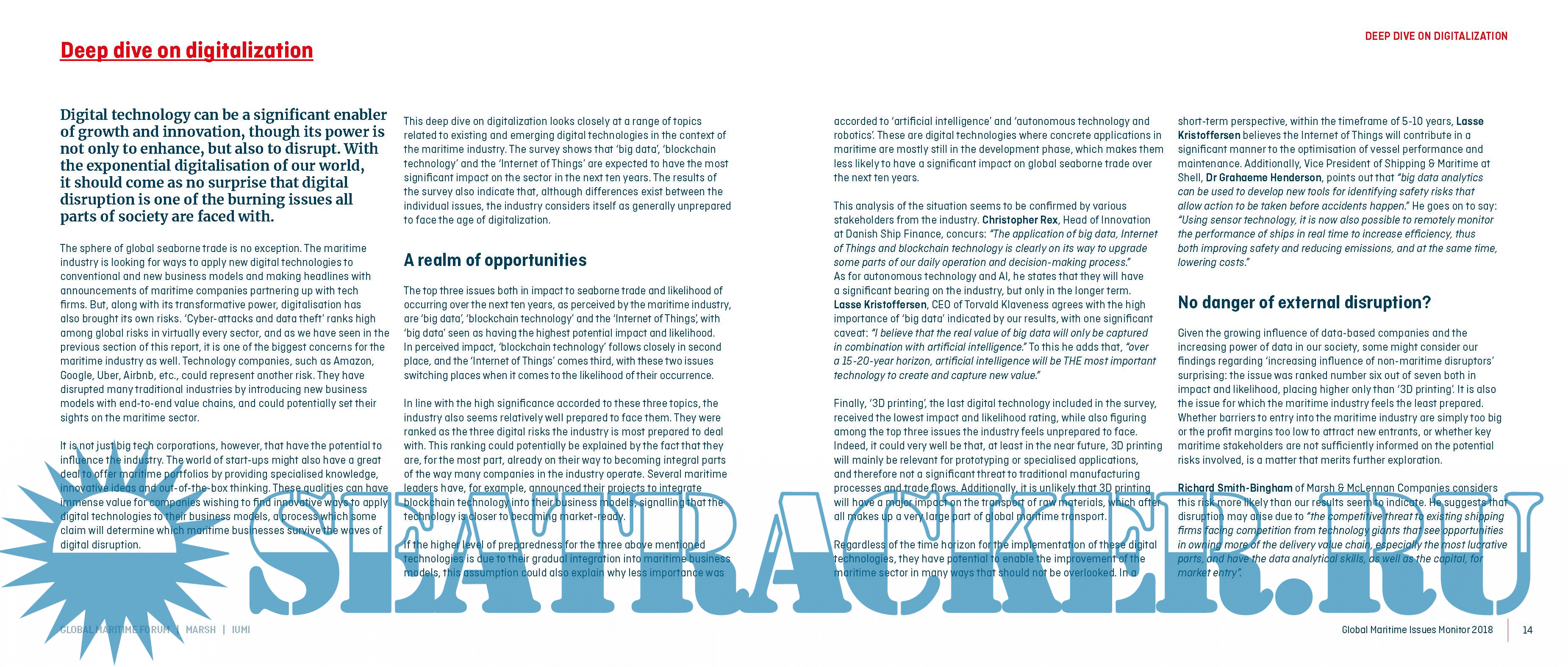 affecting the global maritime industry. The report also undertakes deep dives into the emerging trends in digitalization