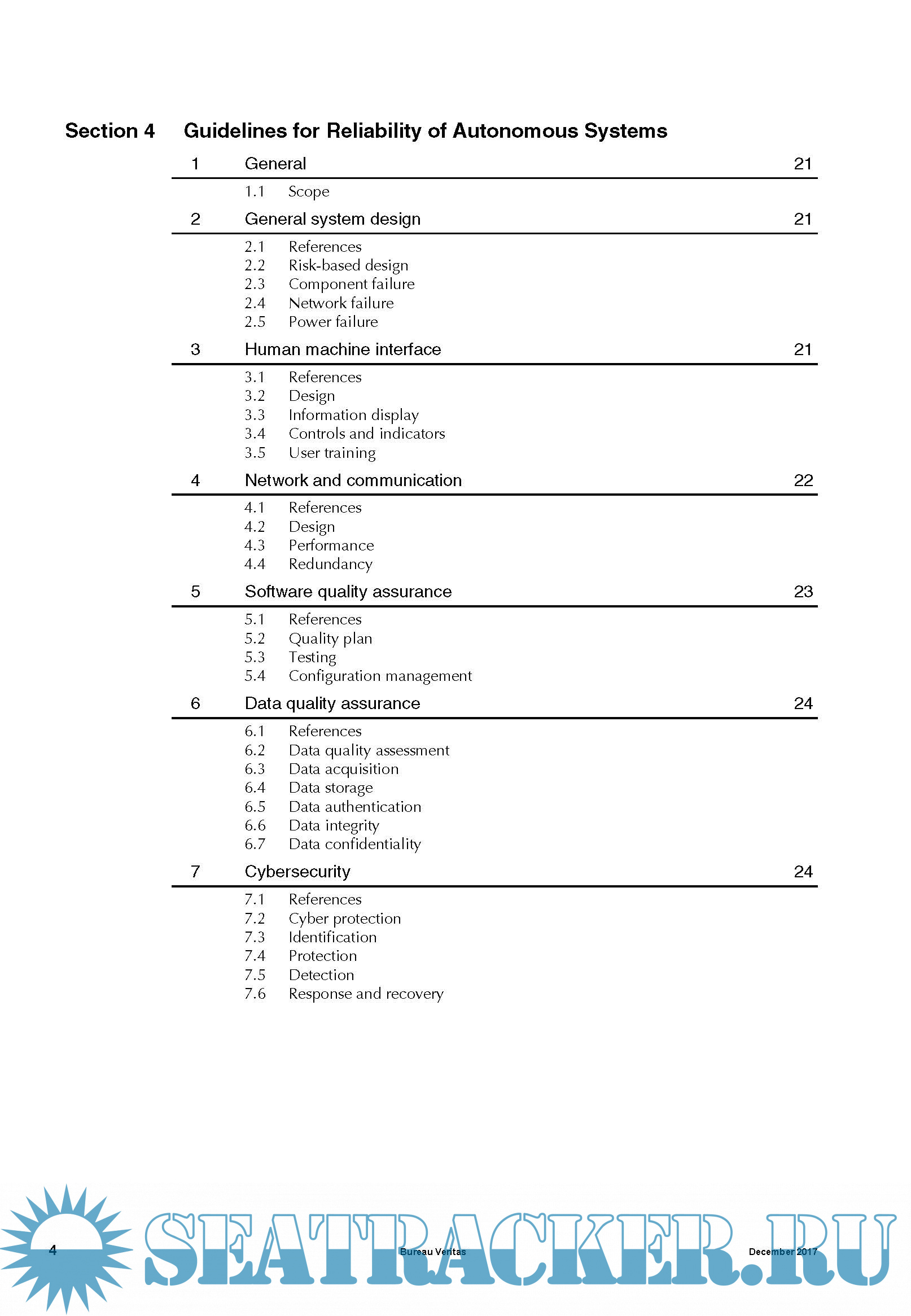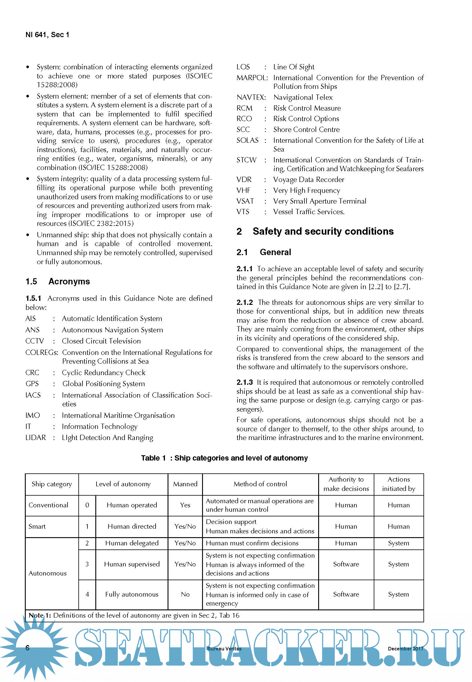Year: 2017 Language: english Author: BV Genre: Guide Format: PDF Quality: eBook Pages count: 31 Description: This Guidance Note sets out the main recommendations for the design or the operation of systems which may be used to enhance the autonomy in the shipping. This Guidance Note is mainly focused on surface units which may be considered as a ship by the authorities (e.g. Maritime Autonomous Surface Ships of 500 GT or more). This excludes small ships (typically length less than 20 m) and unmanned underwater vehicles.