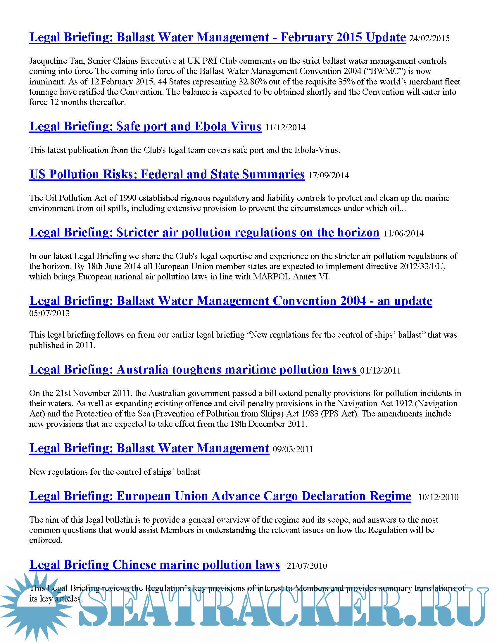 Additional info: Missing Polar Code Legal Briefing issued 15/10/2015 exists on the tracker since 2016.