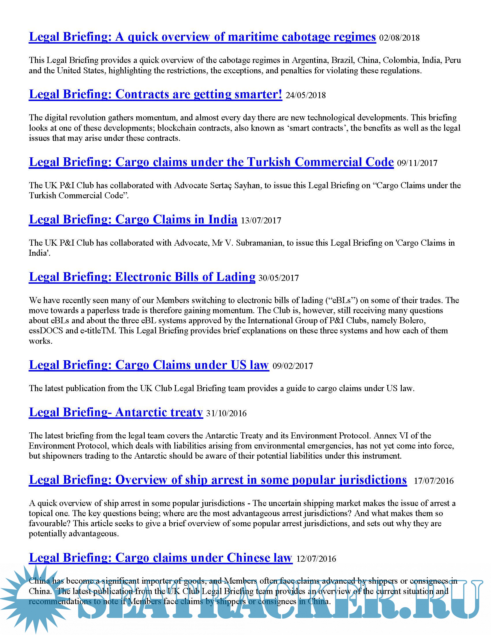 UK P&I Legal Briefing, Complete (updated to August 2018)