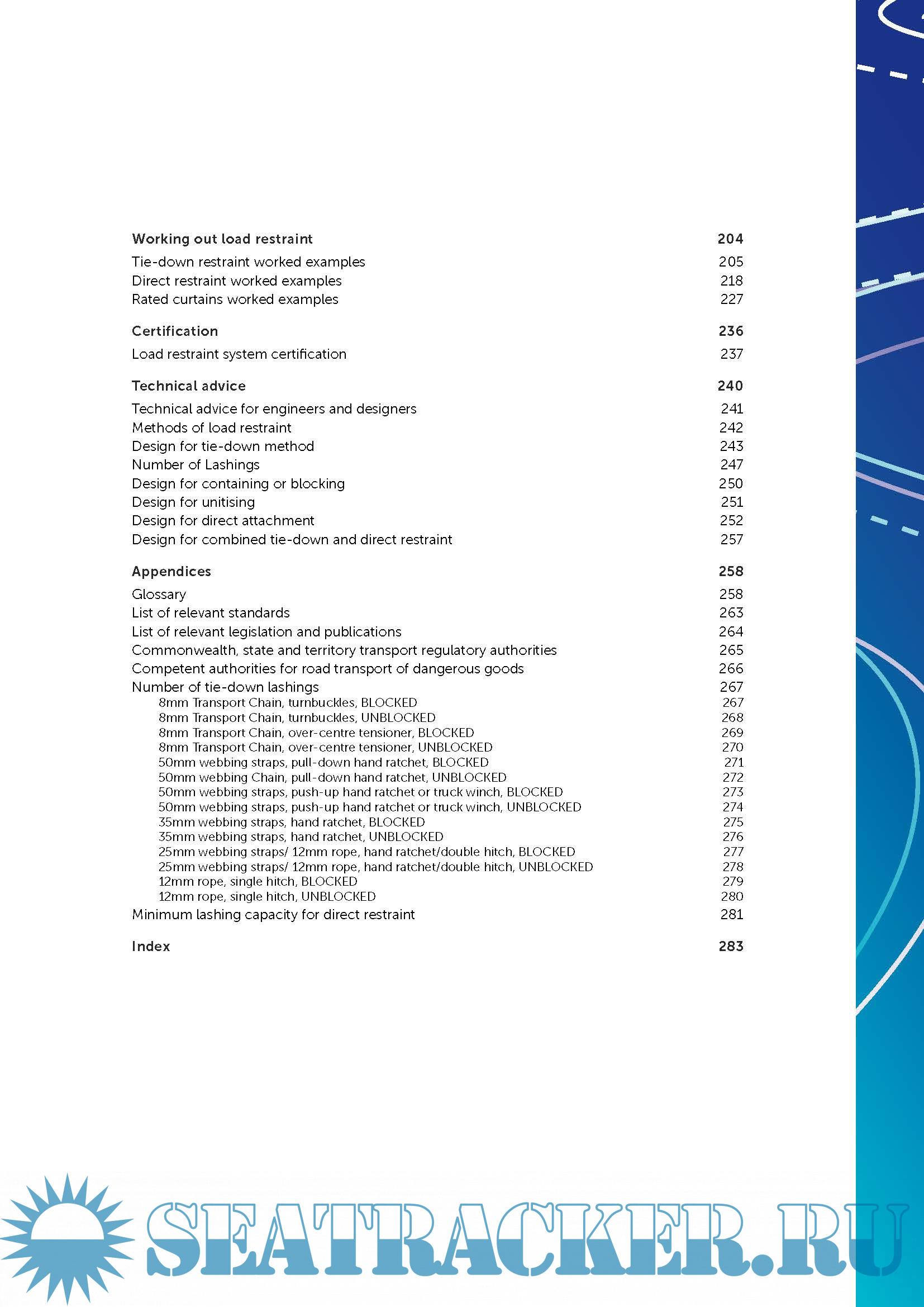 Year: 2018 Language: english Author: National Transport Commission (NTC) Genre: Guide ISBN: 978-0-6480157-5-8 Format: PDF Quality: eBook Pages count: 290 Description: A load restraint system is legally required to be able to withstand forces specified in the Performance Standards. The Load Restraint Guide provides examples of how to restrain loads to meet those forces. It is intended to be used as a guide only, as it is impossible to be prescriptive for the many different types, weights and shapes of loads that can be transported.