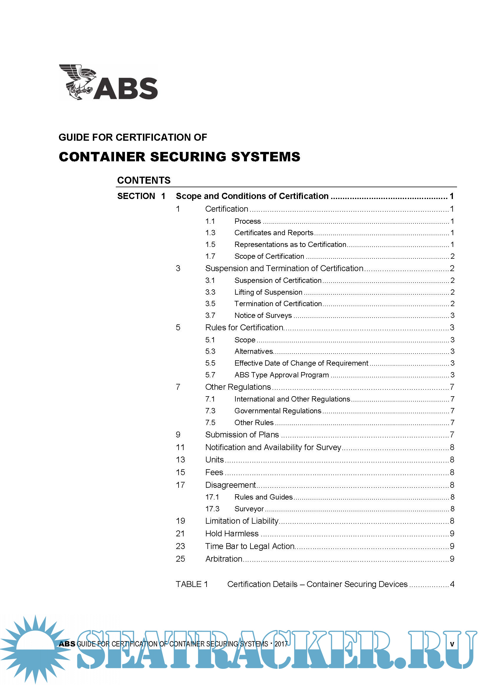 Description: The Guide for Certification of Container Securing Systems was first published by ABS with input and advice from industry. When requested by the Owner, ABS will issue certificates for container securing systems which have been constructed and installed according to the requirements of this Guide. However, such a certification is not a classification requirement.