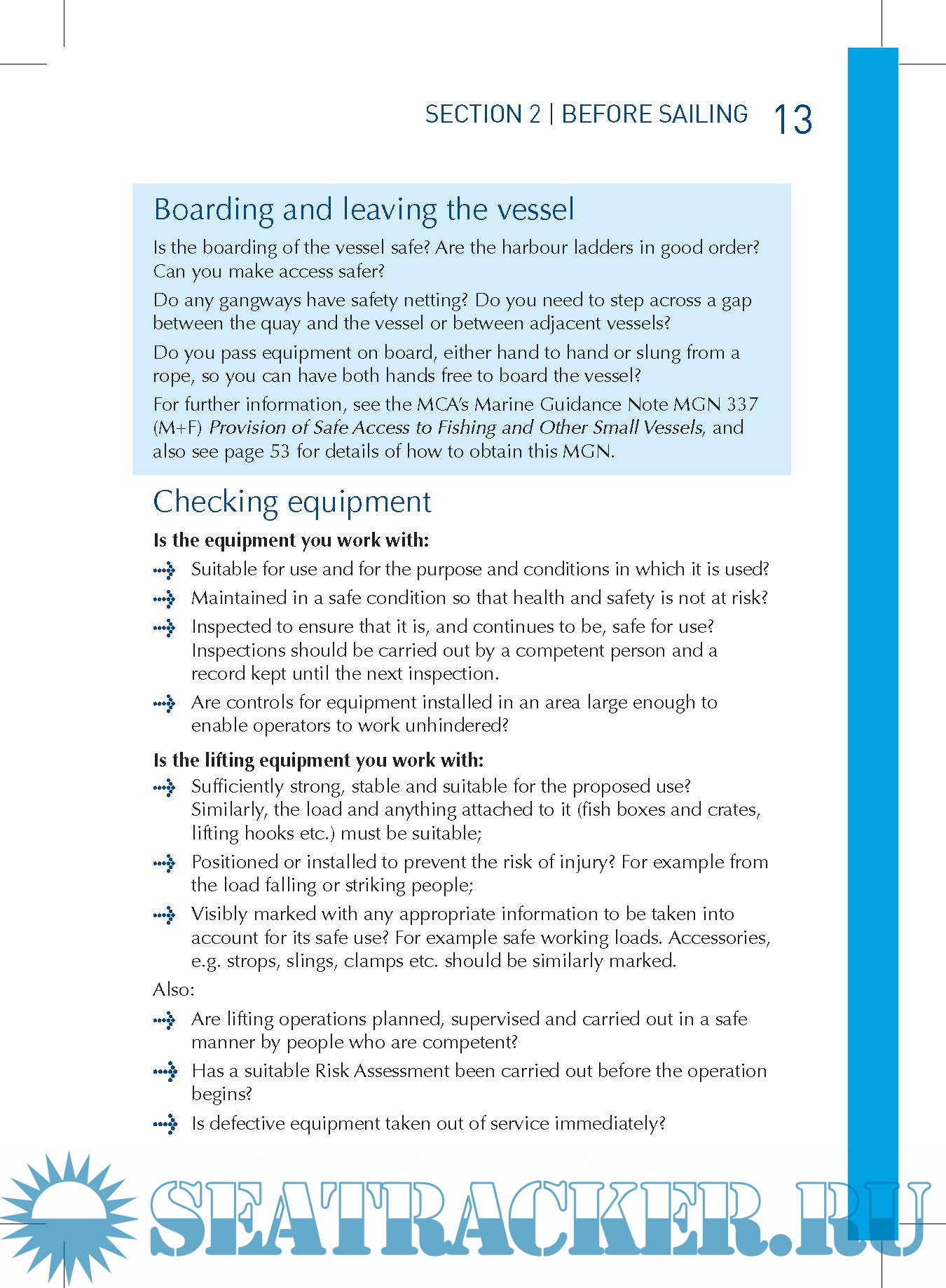 Year: 2016 Language: english Author: MCA Genre: Guide Format: PDF Quality: eBook Pages count: 56 Description: Safety applies to everyone in the fishing industry: beginners, experienced crew members, mates, skippers, and owners. Everyone has a part to play and this guide (which has the endorsement of the UK Fishing Industry Safety Group) is specifically intended to provide guidance and to promote safety awareness to all. This guide provides a broad range of advice in respect of fishing vessel safety.