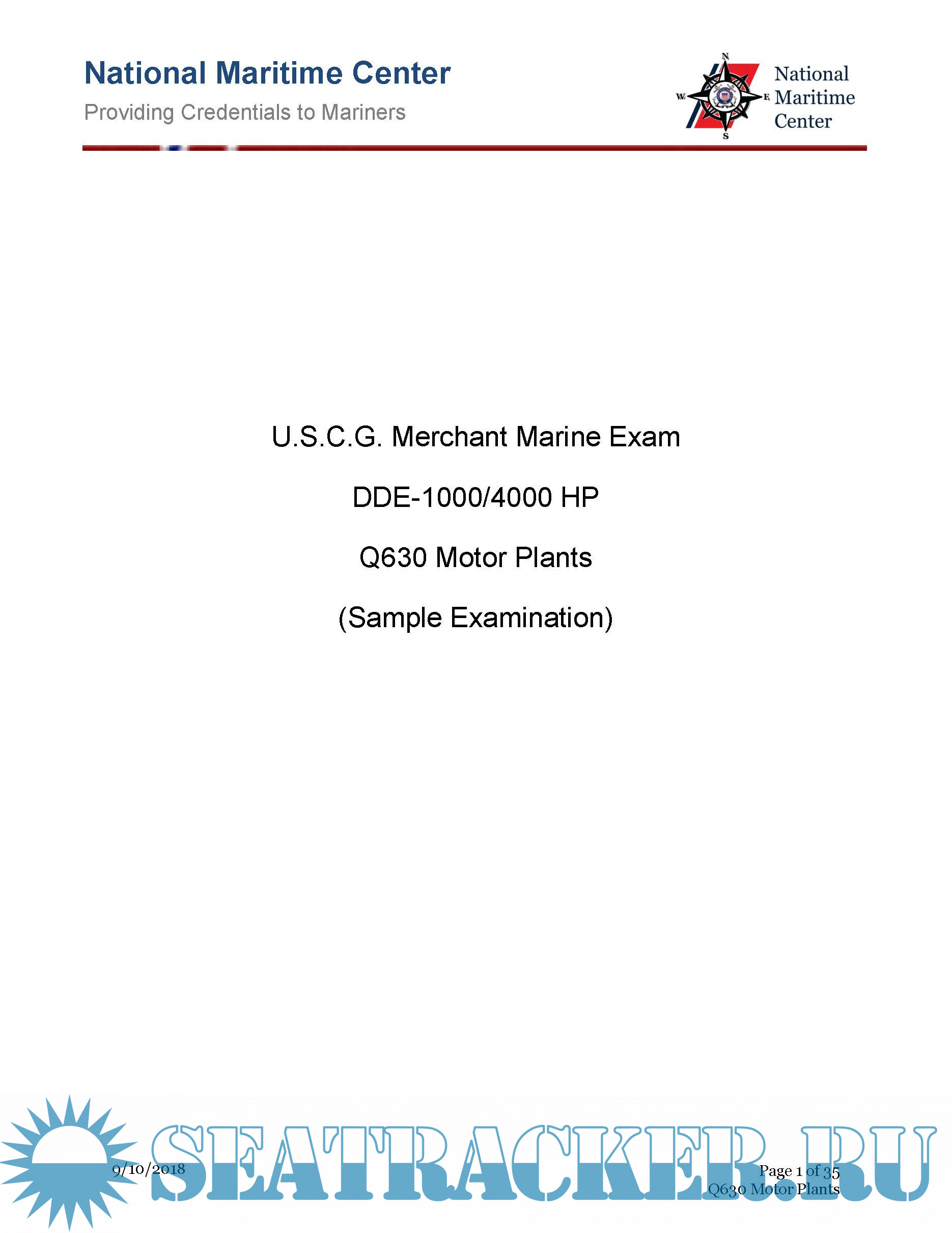 Description: This download contains a sample of USCG Merchant Marine examinations regarding the DDE-1000/4000 HP Q630 Motor Plants.