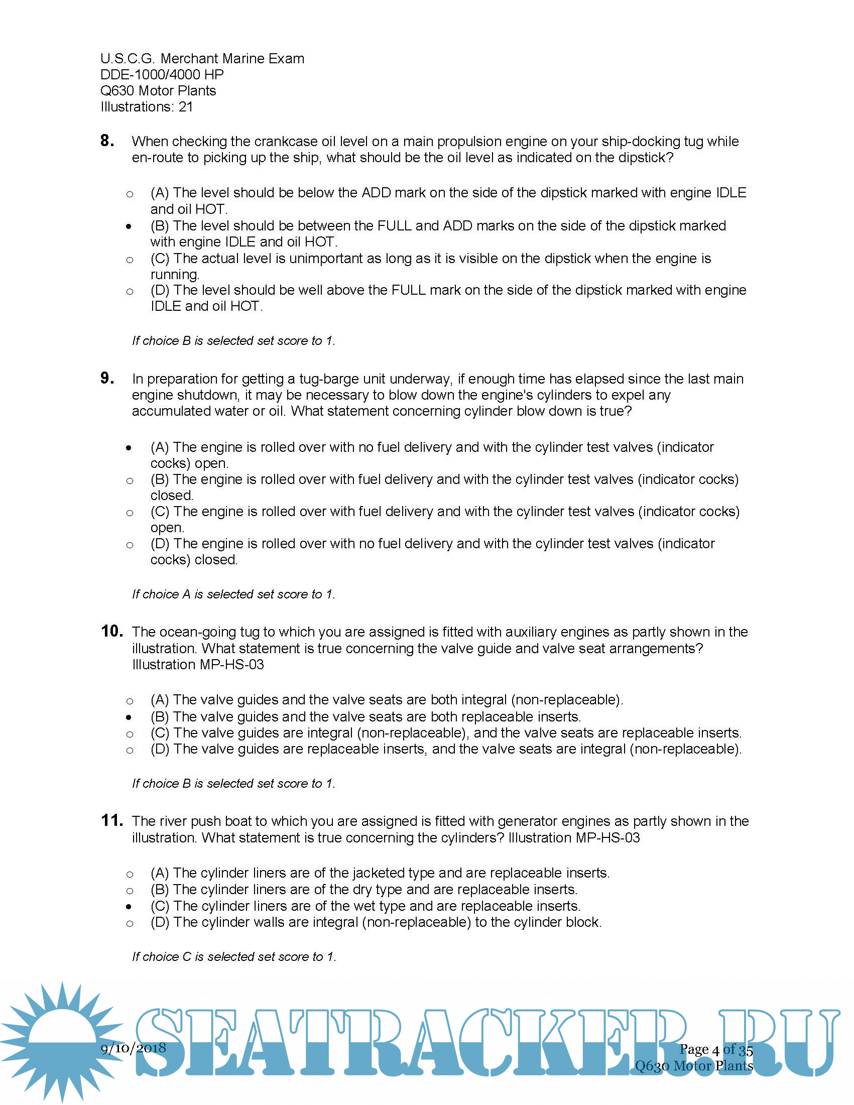U.S.C.G. Merchant Marine Exam DDE-1000/4000 HP Q630 Motor Plants (Sample Examination)