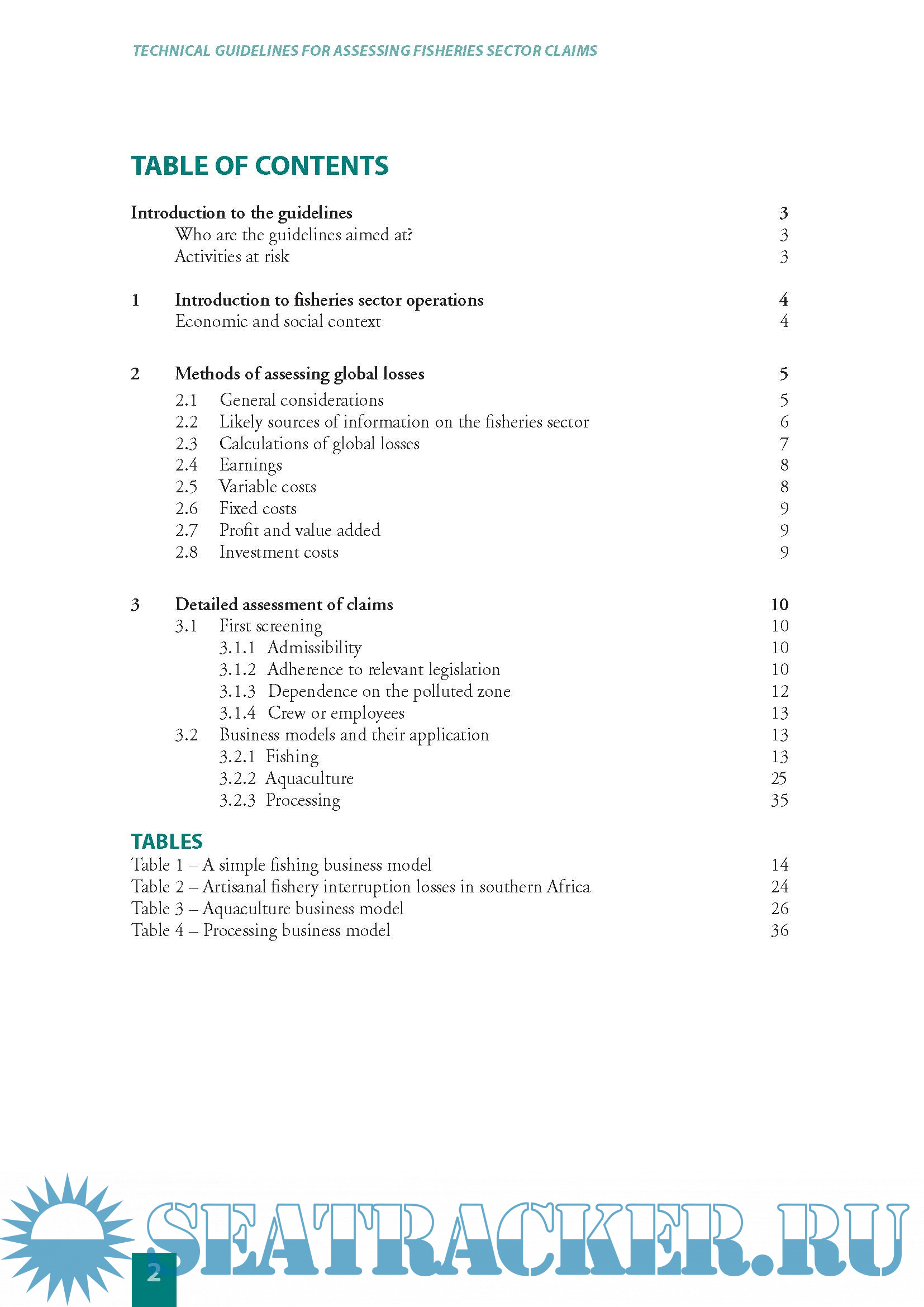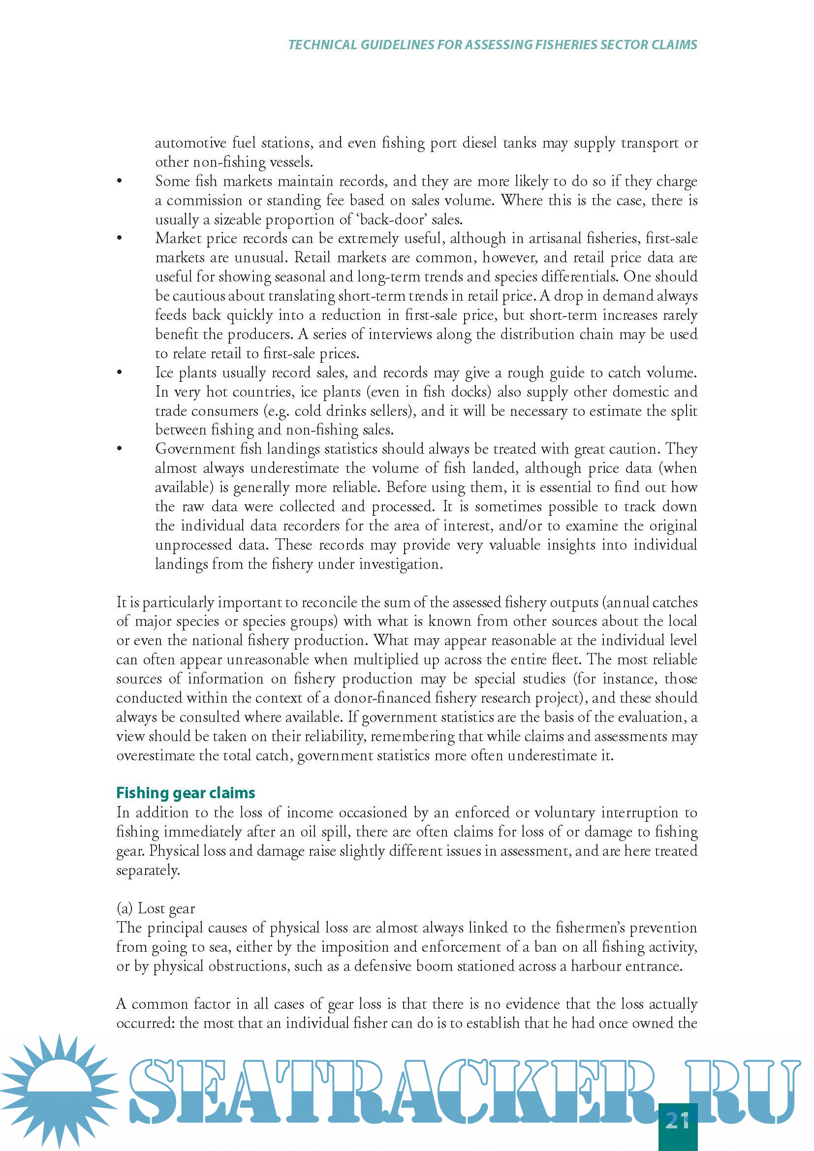 are designed to assist experts in the assessment of claims in the fisheries sector, with special