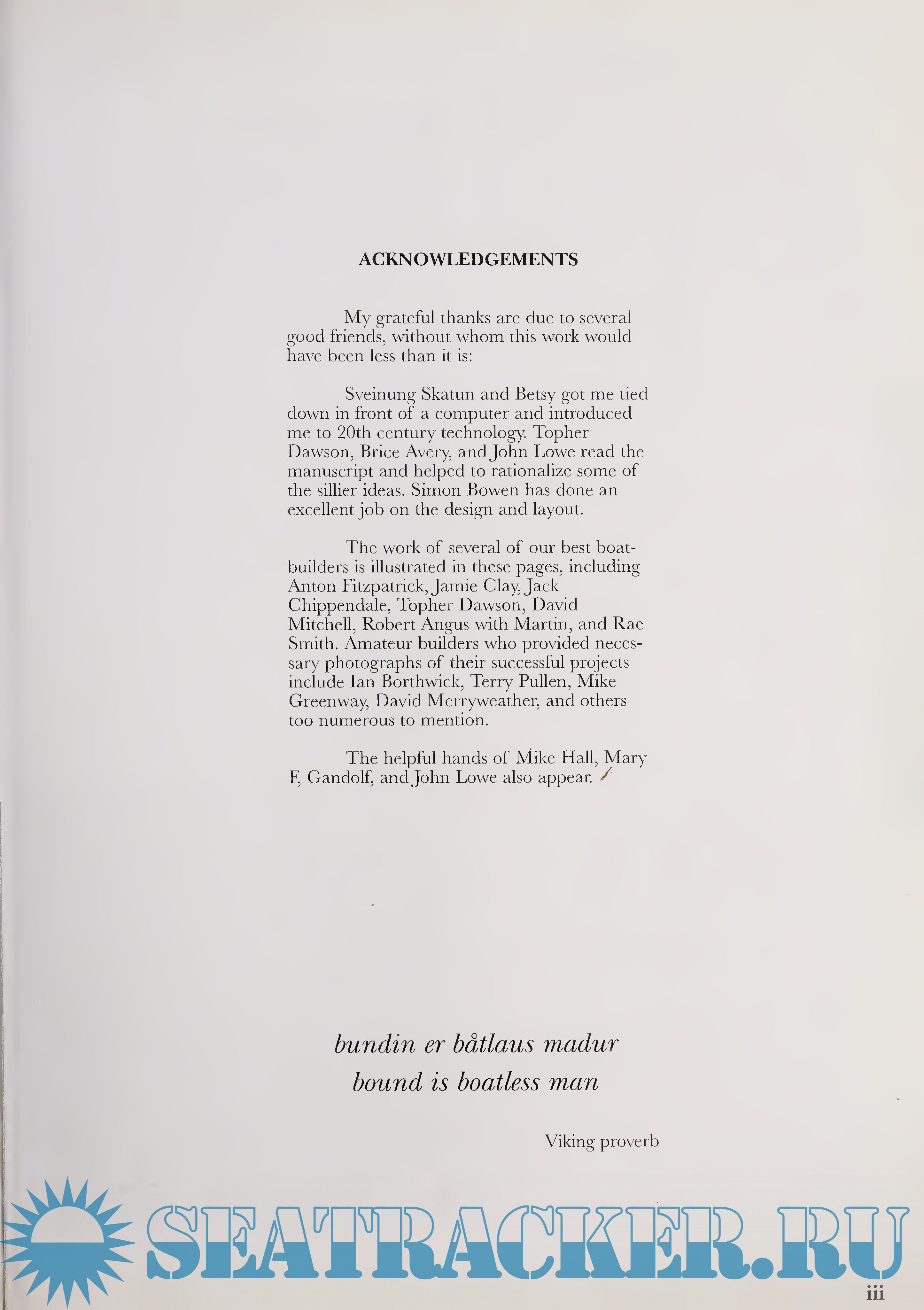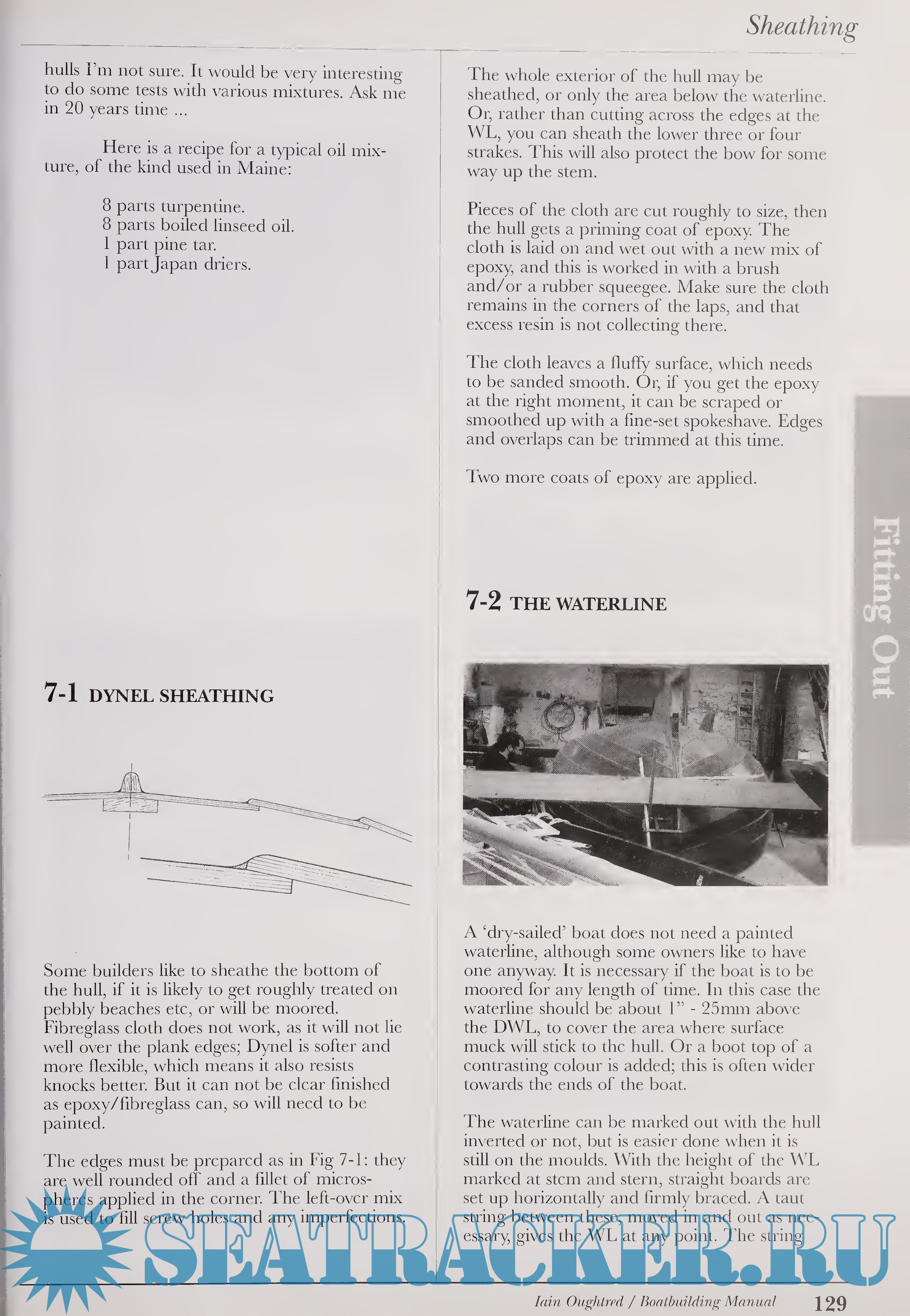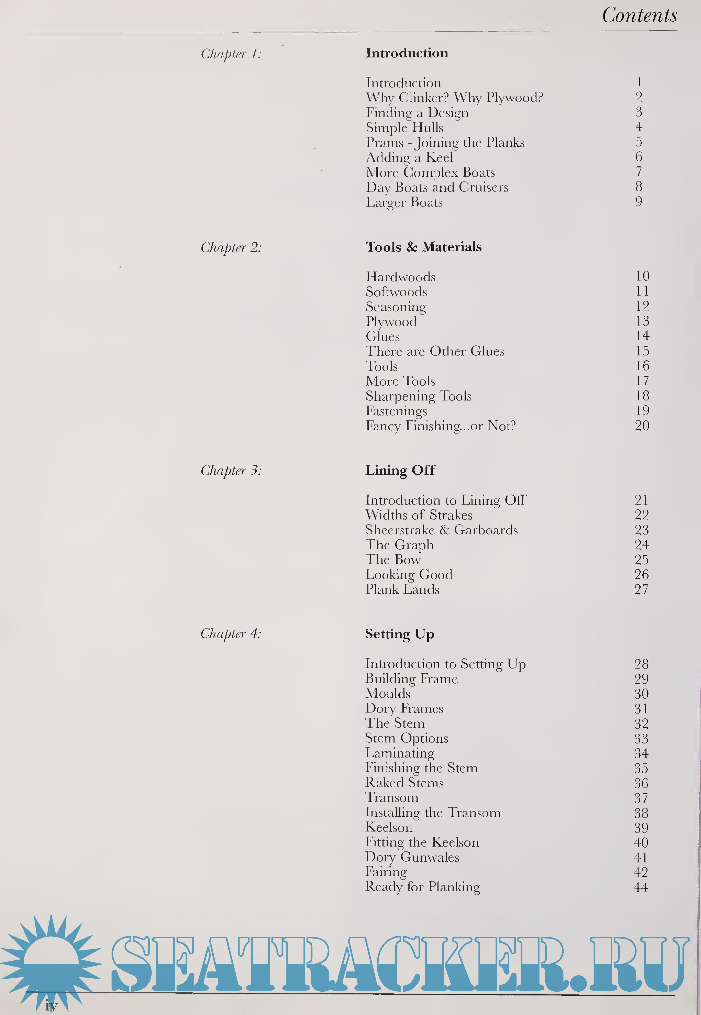 Year: 2004 Language: english Author: Iain Oughtred Genre: Manual Publisher: WoodenBoat Publications Edition: First published 1988 in Scotland ISBN: 0-937822-61-2 Format: PDF Quality: Scanned pages Pages count: 174 Description: Clinker Plywood Boatbuilding Manual is encompassing enough to guide you through any lapstrake (aka Clinker) boatbuilding project. It covers tools and materials needed, lining off, setting up the building jig, planking, interior work, and fitting out. There are hundreds of drawings, hundreds of photos, and it's dosed liberally with Iain's pragmatic experience. Iain Oughtred is the well-known designer of elegant glued-lapstrake plywood boats, including the Acorn Skiffs, Gray Seal, Caledonia Yawl, Whilly Boat, and more. We have been offering his detailed boatbuilding plans for years, so the book was a natural fit. And, you may have noticed many of his designs in Wooden Boat magazine's Launchings column. With the book in hand and a set of his plans, you can hardly go wrong. Additional info: THE AUTHOR After a successful career in centreboard racing dinghies, Iain Oughtred became one of the leading lights of the British wooden boat revival, designing, building and sailing much remarkable craft. These boats have gained a worldwide reputation for their elegance of line, sound construction, and excellent sailing performance. His perfectionist approach may be unbusinesslike but provides highly refined designs and detailed plans. In this he hopes to encourage a return to a deep appreciation of traditional values of craftsmanship, believing this is a vital part of the true education, and thus helps to nourish the human spirit in an impoverished age.