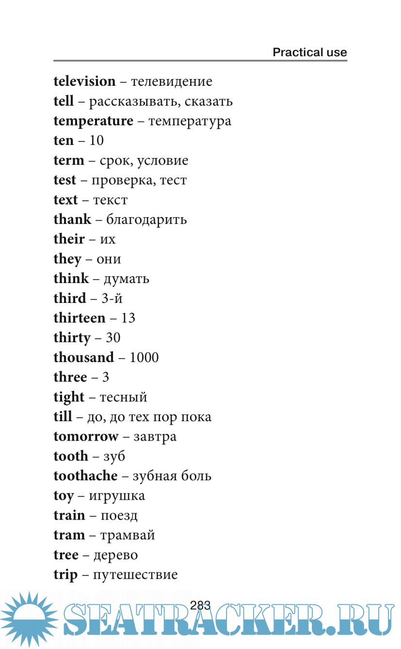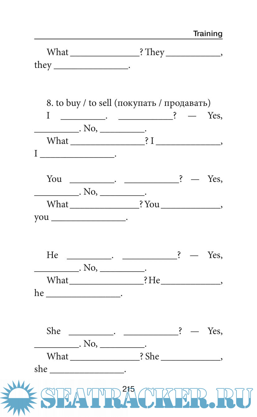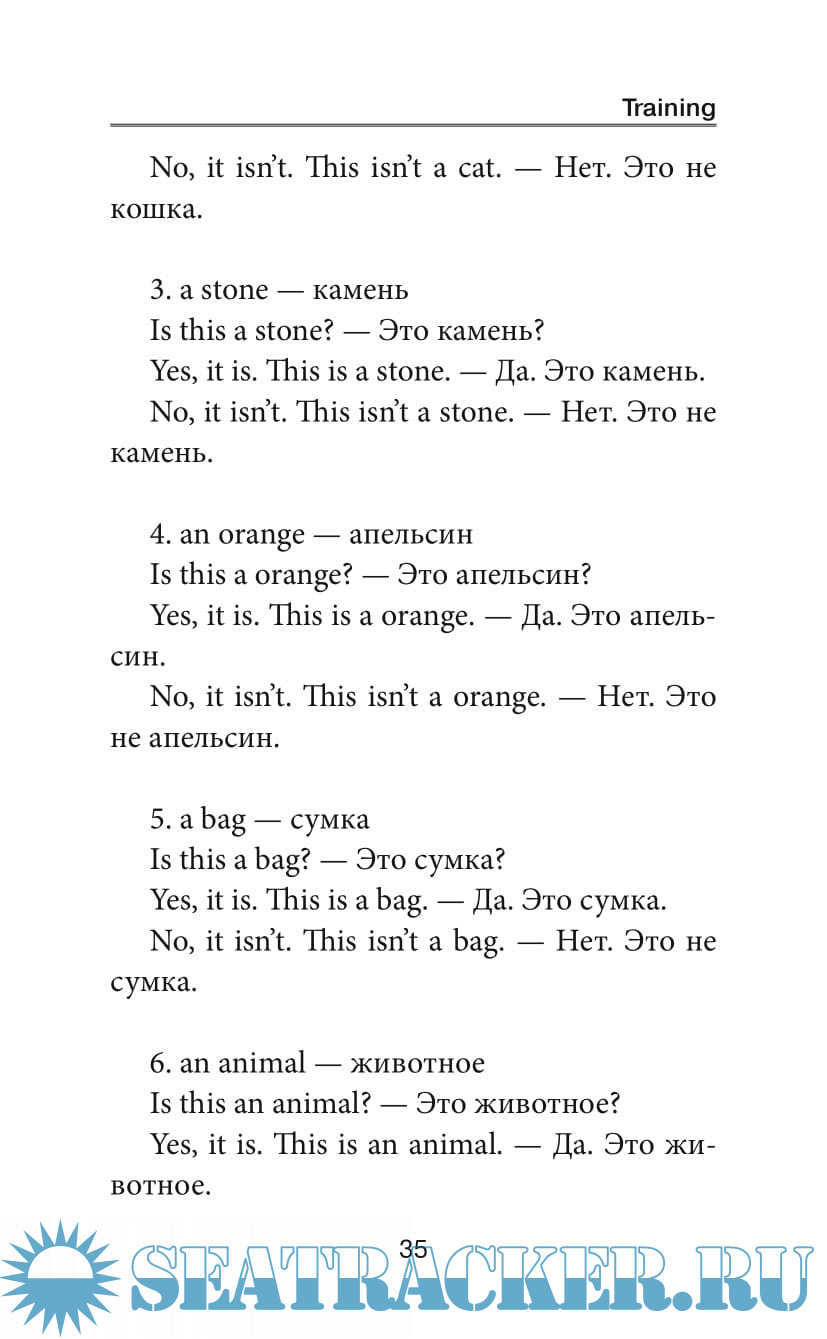 От автора. . . . . . . . . . . . . . . . . . . . . . . . . 3 Part I. Training Unit 1. Английский алфавит. Неопределённый артикль. Th is is/Th at is. What is this/that? . . . . 8 Unit 2. Множественное число существительных.Th ese/Th ose are. What are these/those? . . . . . . . . . . . . . . . 50 Unit 3. Простое настоящее время. What do I do? Самые употребительные глаголы. Определённый артикль . . . . . . . 102 Unit 4. Числительные . . . . . . . . . . . . . . 140 Unit 5. Простое прошедшее время. What did I do? Неправильные глаголы. Личные и притяжательные местоимения . . 147 Unit 6. Прилагательные. Степени сравнения . . . . . . . . . . . . . . . . . . . . . 189 Unit 7. Простое будущее время. What will I do? Косвенные местоимения . . . 200 Part II. Practical use Полезные фразы на любой случай . . . . . . 240 Word List . . . . . . . . . . . . . . . . . . . . . . 262