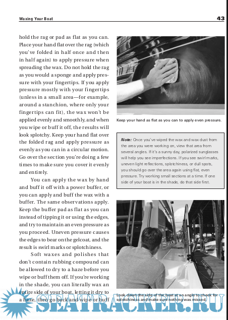 Year: 2009 Language: english Author: Natalie Sears Genre: Manual Format: PDF Quality: Scanned pages + text layer Number of pages: 193 Description: Restore that ; showboat ; look to tiredgelcoat, canvas, brightwork, upholstery,metalwork, and more Boat cleaning isn't as simple as taking a can of kitchencleanser and scrubbing away, and improper procedurescan cause damage to the boat or the environment. Thisis the only stem-to-stern guide to all aspects of boatcleaning and detailing. The book recommends bothgeneric and brand-name cleaning and maintenancematerials to help you make the right selections. Lots of before-and-after photos show you how to: Keep your boat looking great and protect marketvalue Achieve maximum results with minimum work andenvironmentally safe methods. Use tables and checklists to keep work organized andefficient.