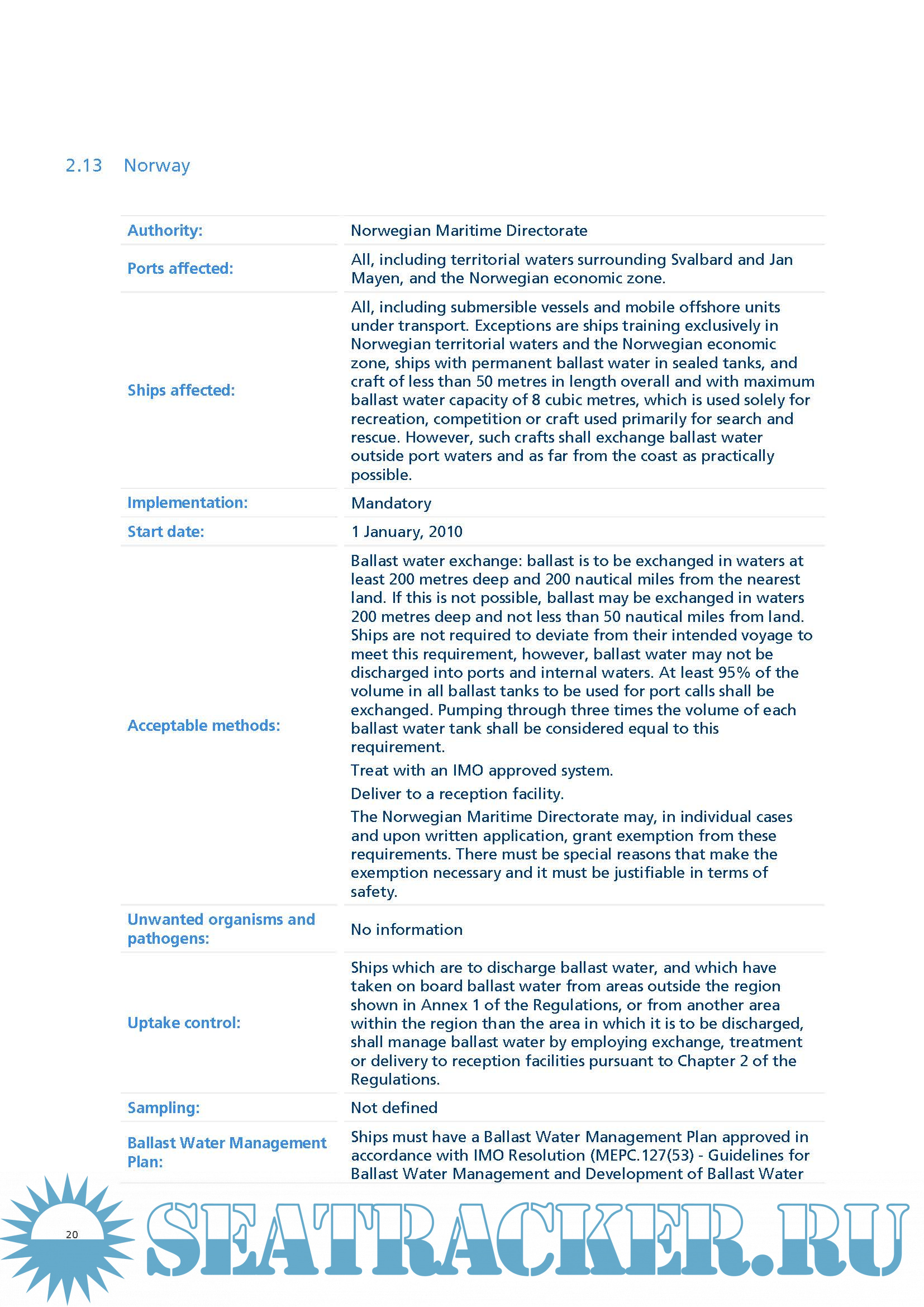 Year: 2016 Language: english Author: LRS Genre: Reference book Format: PDF Quality: eBook Pages count: 44 Description: This document contains a synopsis of a number of known national, regional and local ballast water management regulations and known bio-fouling management regulations and requirements. The information here is an overview of the regulations and requirements to the best of our knowledge at the time of writing, but may not be an exhaustive list. Individual country authorities should be consulted before entering their jurisdiction, to ensure compliance with any relevant ballast water management regulations. In addition, the complete text of each regulation referenced in this document should be consulted for full details.