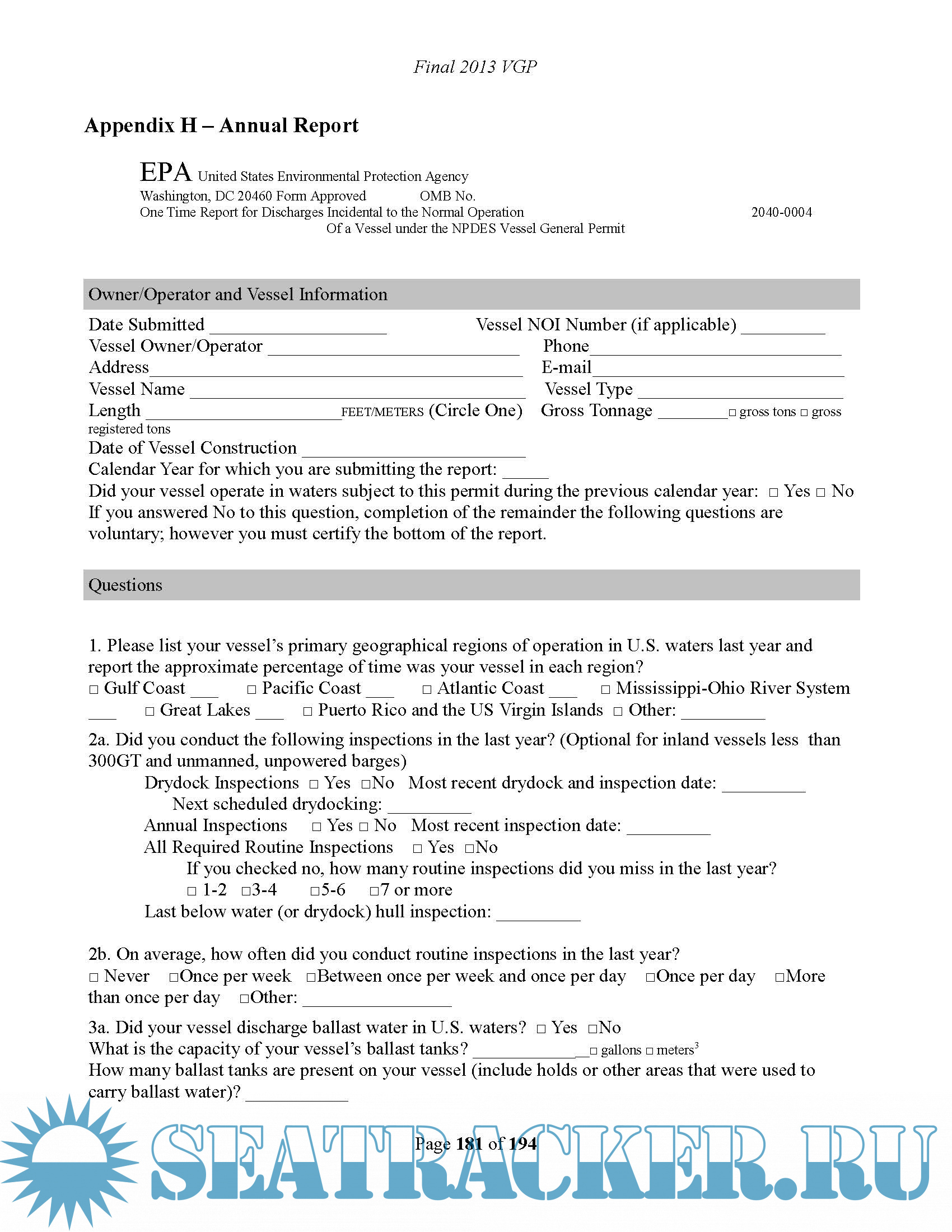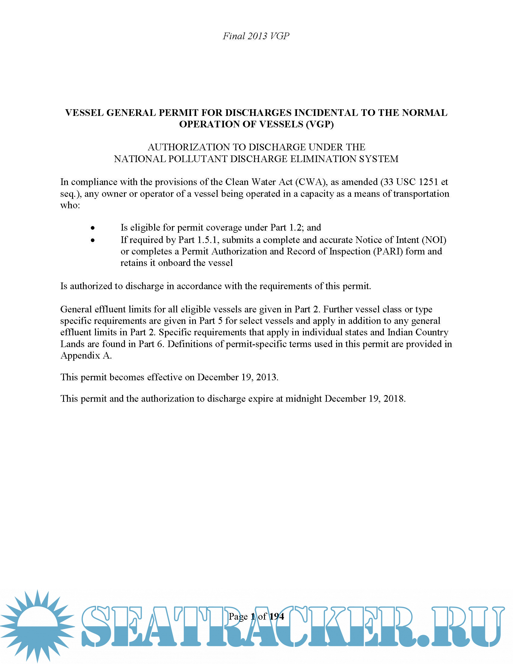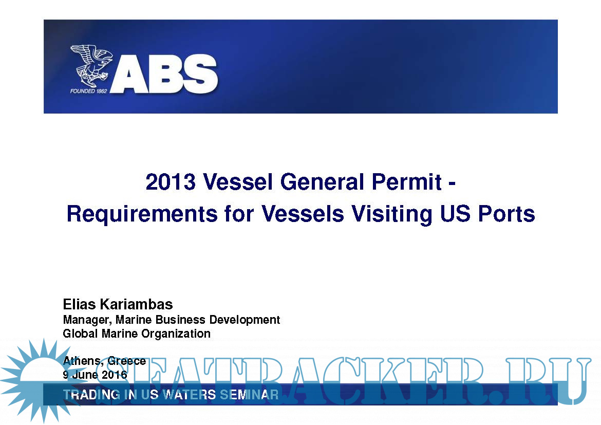 US Regulatory Update: Requirements for Vessels Visiting US Ports - Ballast Water Management - Vessel General Permit - Water Pollution Control Act