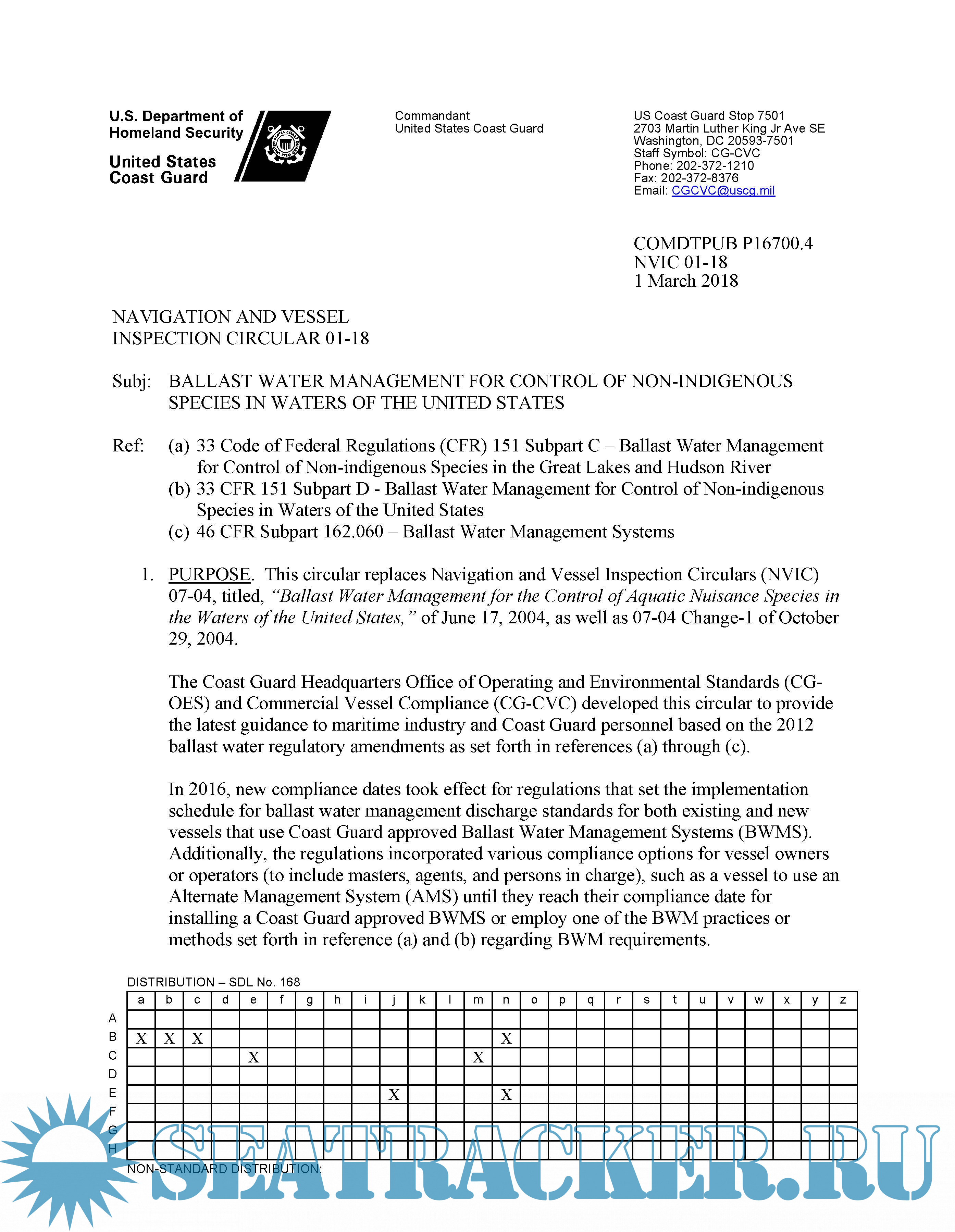US Regulatory update for Ballast Water Management