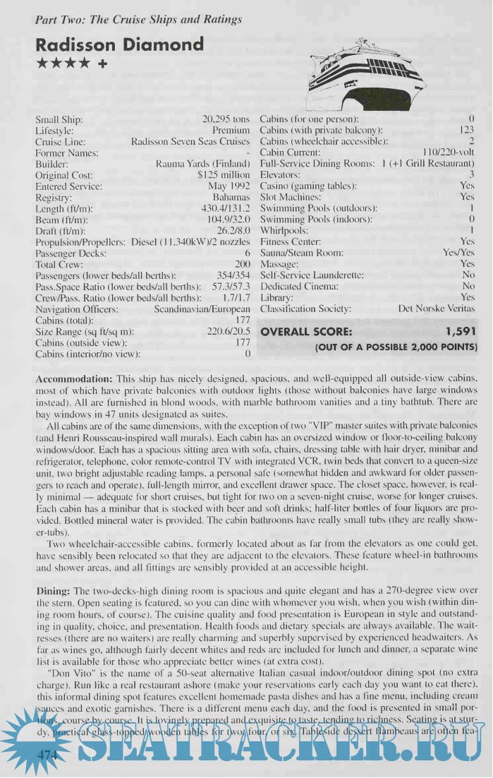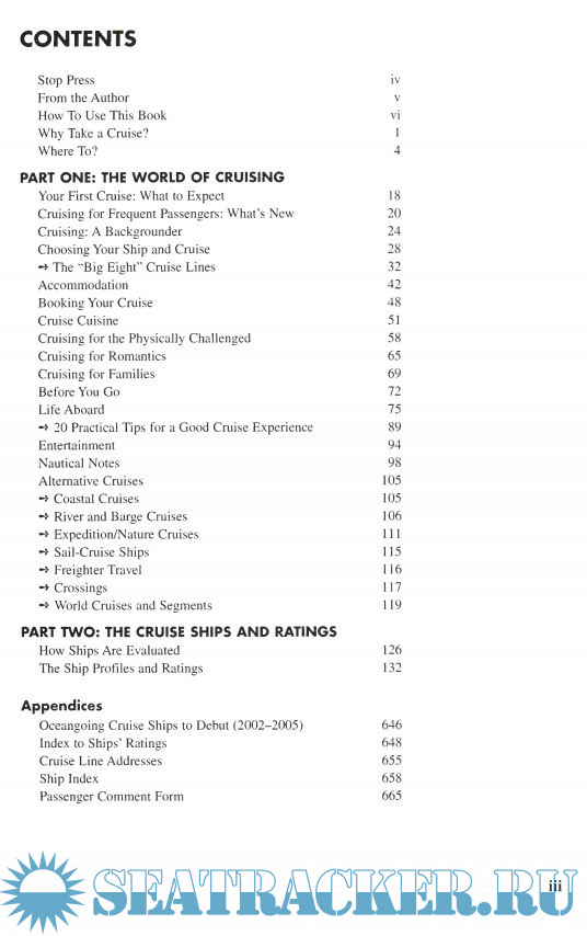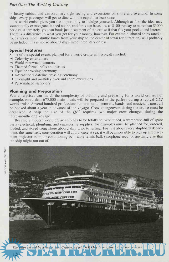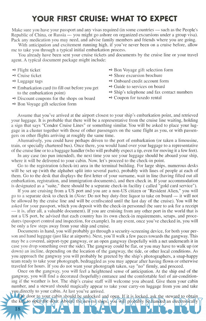 Year: 2001 Language: english Author: Douglas Ward Genre: Guide Publisher: Berlitz ISBN: 2-8315-7840-Х Format: PDF Quality: Scanned pages Pages count: 672 Description: The book is divided into two sections. Part One introduces you to the world of cruising, helps you define what you are looking for in a cruise vacation and what kind of accommodation to choose, and provides valuable advice on what to know before you go. It provides a look at life aboard ship and how to get the best from it; the cuisine; nautical terminology; amusing anecdotes; the ship’s hierarchy; and advice about going ashore. Alternative cruises, such as expedition cruises, sail-cruise ships, coastal and river cruises, and freighters, are discussed, too, culminating with that ultimate travel experience: the around-the-world cruise. Part Two contains profiles of 269 oceangoing cruise vessels. From large to small, from unabashed luxury to ships for the budget-minded, old and new: They are all here. The ratings and evaluations are a painstaking documentation of author's personal work. He travels constantly throughout the world, and he is "at sea" for more than nine months each year.