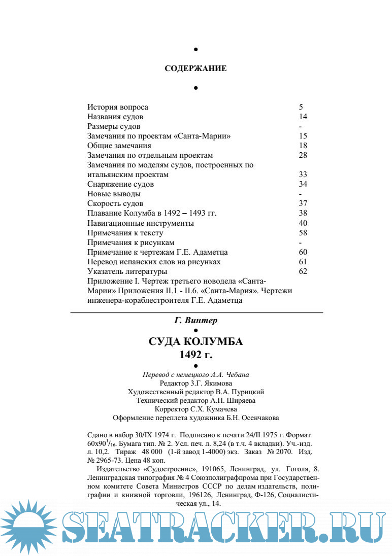 Описание: В книге дан критический анализ доступных автору материалов о характеристиках «СантаМарии», «Ниньи» и «Пинты» - судов знаменитой эскадры Христофора Колумба, на которой он совершил в 1492 - 1493 гг. свое первое плавание в Вест-Индию.