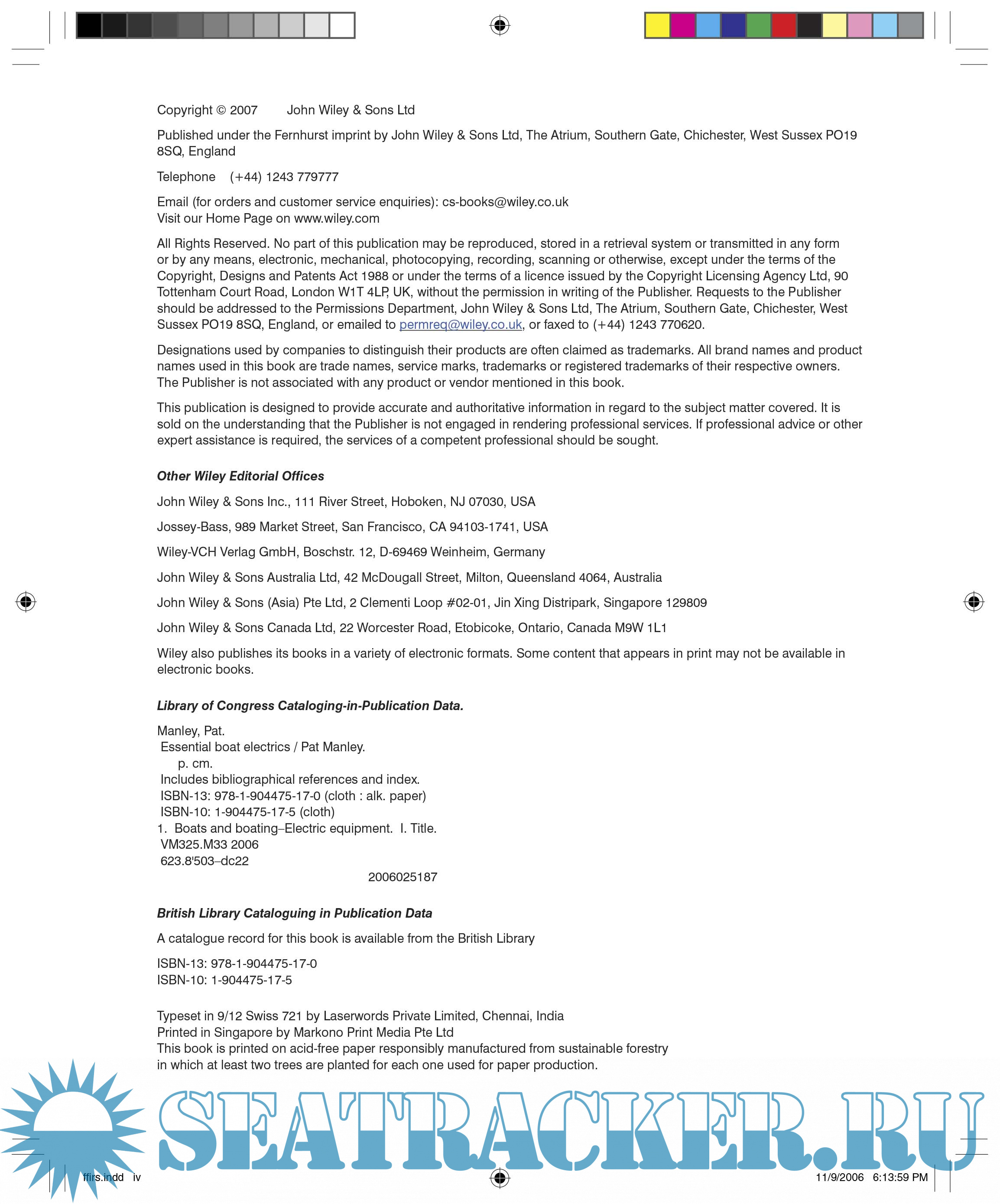 Year: 2007 Language: english Author: Pat Manley Genre: Handbook Publisher: John Wiley & Sons Ltd ISBN: 1-904475-17-5 Format: PDF Quality: eBook Pages count: 154 Description: A clear, concise and logical introduction to boat electrics. An understanding of this subject is essential for any skipper--salt water is a harsh environment for wires and chips and problems can occur at any time, both in harbour and at sea. Featuring fantastic, clear, colour graphics.Topics include: What is electricity?Where electricity comes from (the engine, shore power, a generator, renewable sources).How the boat is wired.Instruments.Laptops.Charging the batteries.Troubleshooting. PS See my other releases in the "Yachting, sailing, boating" topic: https://seatracker.club/tracker...id=54420#results