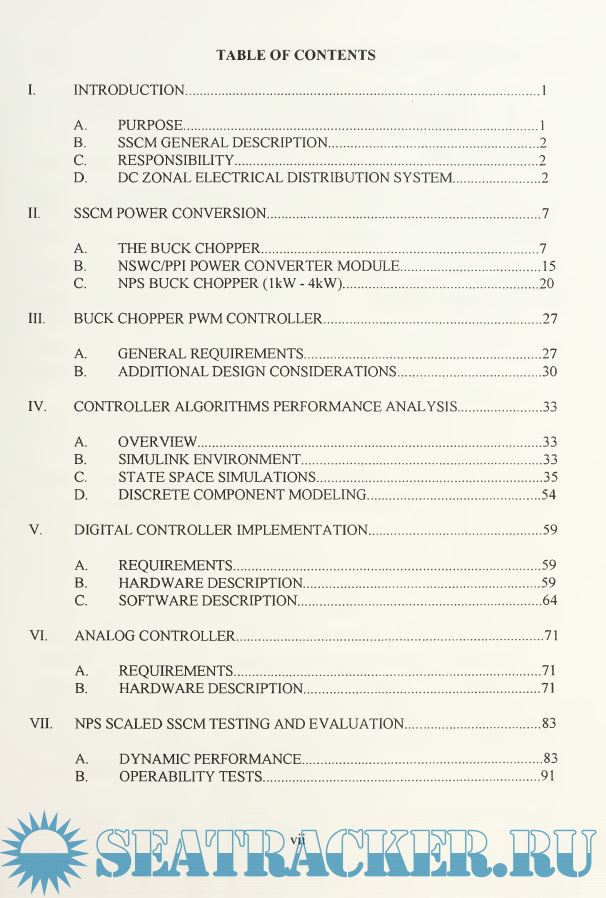 Year: 1996 Language: english Author: Benjamin D. Salerno Genre: Research papers Format: PDF Quality: eBook Pages count: 142 Description: The Navy has invested in an effort to update the ship electrical distribution system for new vessels. The new architecture divides the ship into specific zones containing common energy conversion devices. Rather than the traditional AC distribution, DC will be produced at the source ( a multiphase alternator connected to a controlled rectifier). An integral part of the proposed DC distribution system is the Ship Service Converter Module (SSCM) which acts as a buffer between a main DC bus and a specific zone in the ship. Currently a research effort is underway to make available two Reduced Scale Advanced Development (RSAD) lOOkW SSCMs for testing at the Naval Surface Warfare Center, Annapolis. The Power Laboratory at the Naval Postgraduate School is responsible for delivering two identical prototype controllers based on digital signal processing for the RSAD SSCMs. The focus of this thesis is the design, construction and testing of the prototype controllers. This engineering effort includes the following: the analysis of the performance of various control algorithms through simulation; the refinement of the selected algorithm; the design, assembly, and testing of the controller and its supporting hardware; the development and testing of the software; and the integration and testing of the complete system.