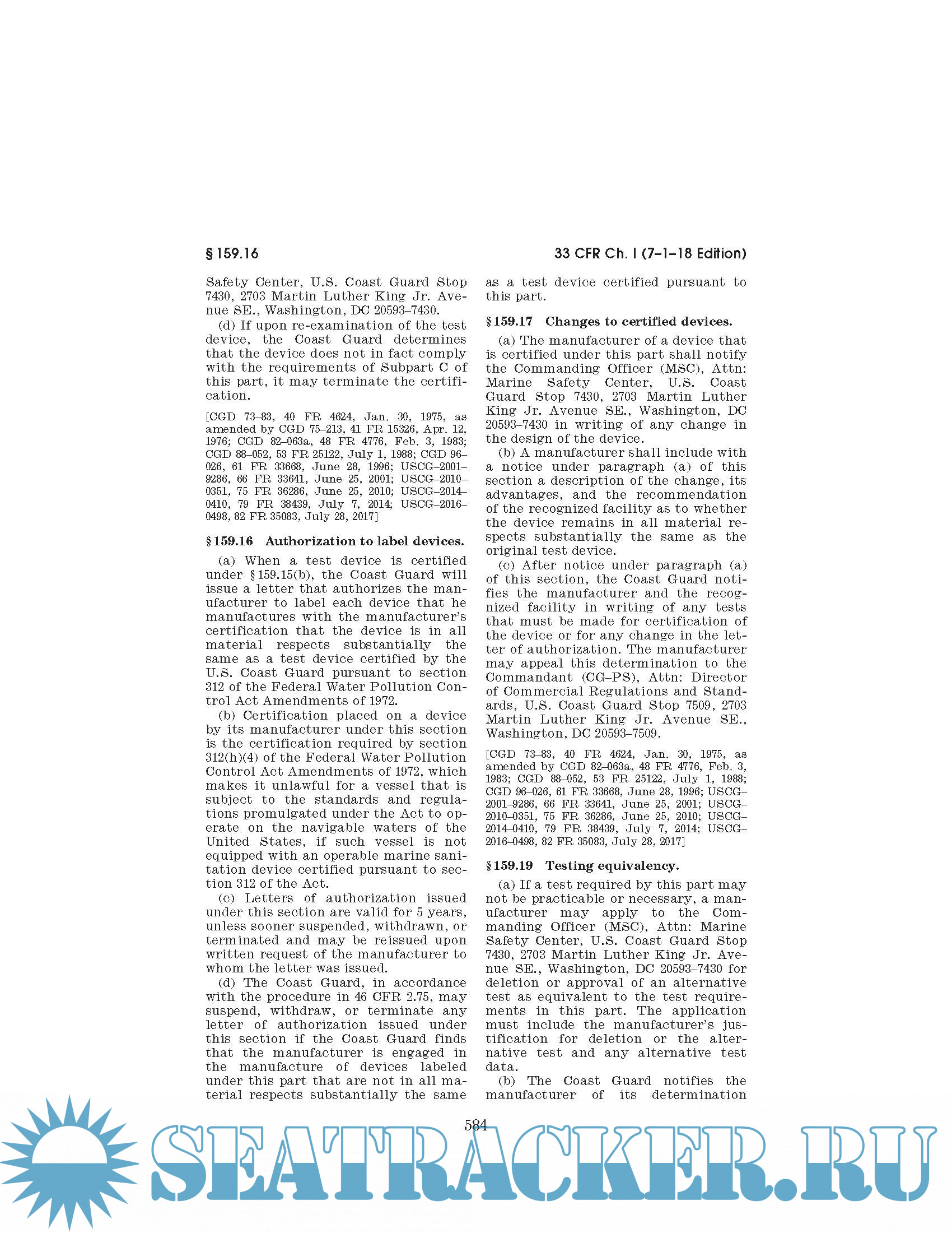 Title 33 Navigation and Navigable Waters Parts 125 to 199Revised as of July 1, 2018 (1193 Pages)