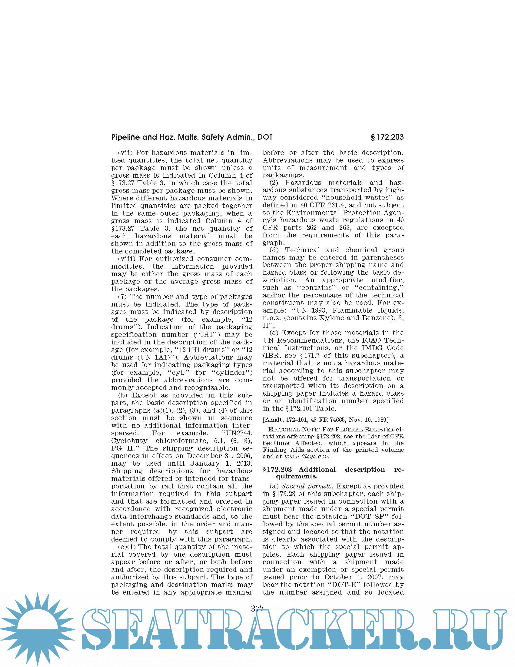 In the volume containing parts 100–177, see § 172.101 for the Hazardous Materials