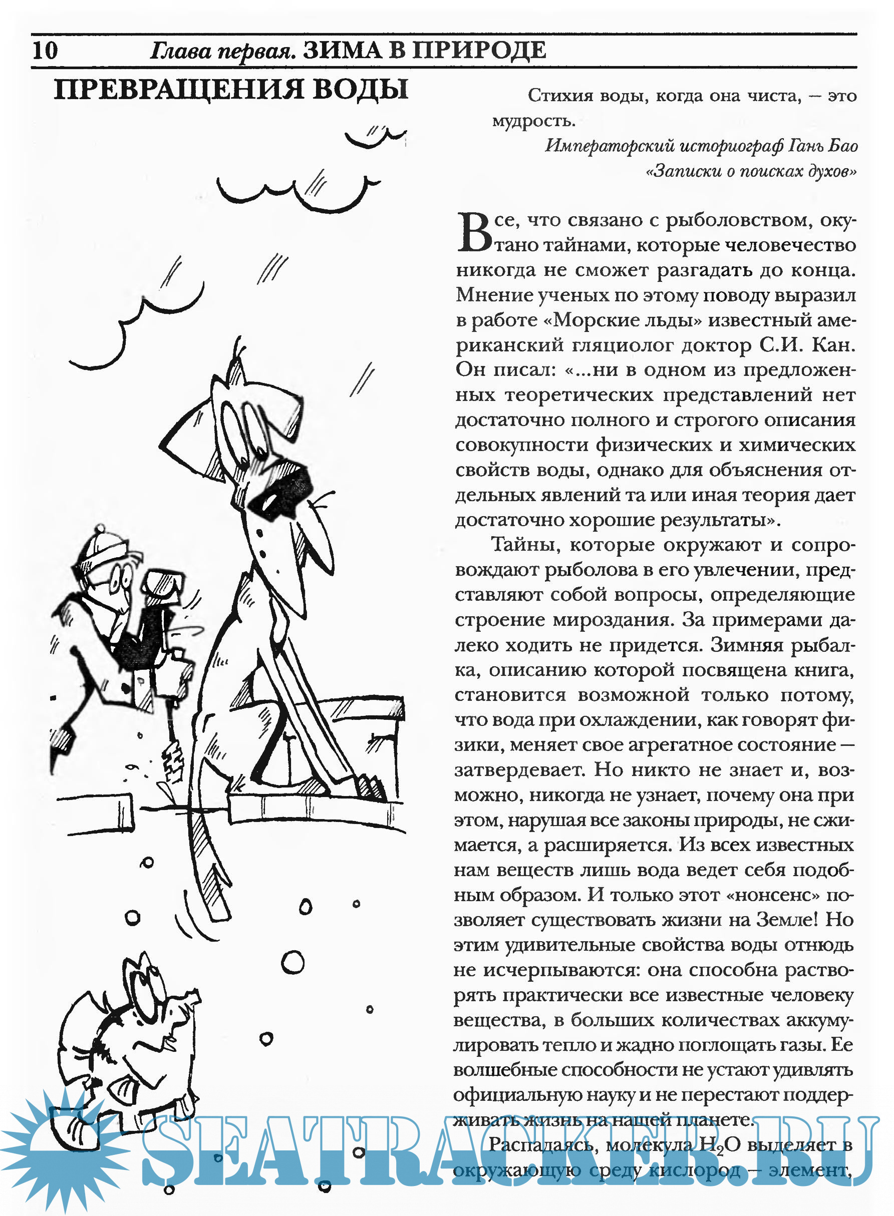 Описание: Автор книги, которую вы держите в руках, совершил первую в отечественной литературе попытку полного описания зимней рыбалки и всего с нею связанного, начиная с исследования природных условий в воде и околоводном пространстве в зимнюю пору и заканчивая необходимыми рыболову и натуралисту разнообразными сведениями о снастях и повадках рыб в данный период. И начинающие, и опытные рыболовы найдут здесь полезную информацию, касающуюся, например, исследования поведения льда в разных физических условиях, описание некоторых новых способов ужения рыбы и т.д. Начинающий рыболов обязательно узнает то, чего раньше не знал. Если вы относитесь к числу тех людей, которые, не страшась трескучих морозов, посвящают свободные зимние дни любимому увлечению, — эта книга для вас!