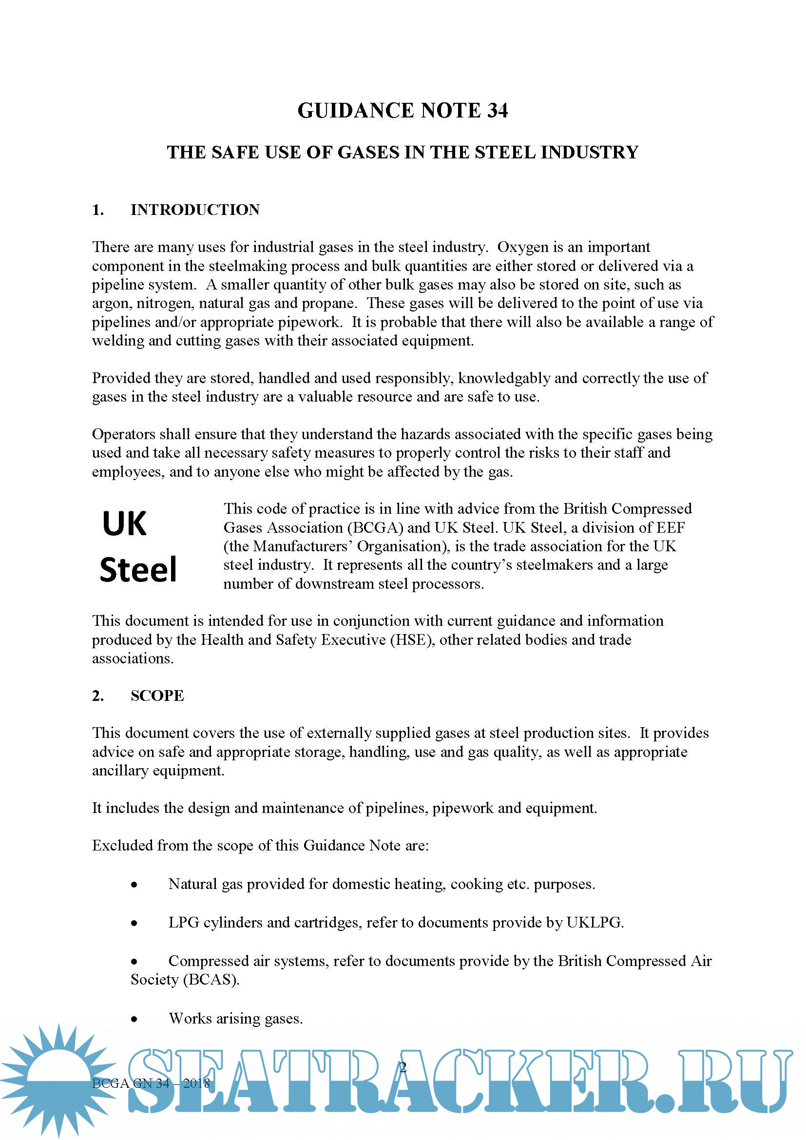 Guidance Note 34, The Safe Use of Gases in the Steel industry