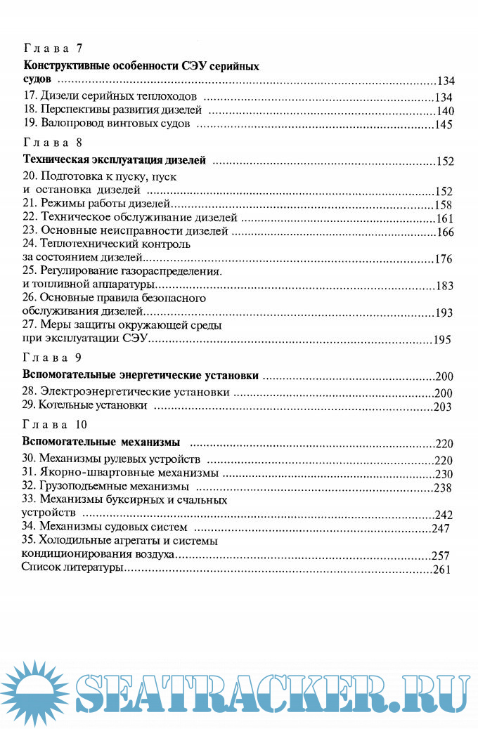Описание: В книге рассмотрены конструкции и принципы действия главных и вспомогательных дизелей, палубных механизмов, вспомогательных котлов и судовых насосов, а также приведены необходимые сведения по их техническому обслуживанию. Большое внимание уделяется средствам диагностирования и автоматизированного управления энергетическими установками серийных теплоходов. Книга предназначена в качестве учебника для учащихся электромеханической и судоремонтной специальностей речных училищ и техникумов, а также может быть использована учащимися судоводительской специальности.